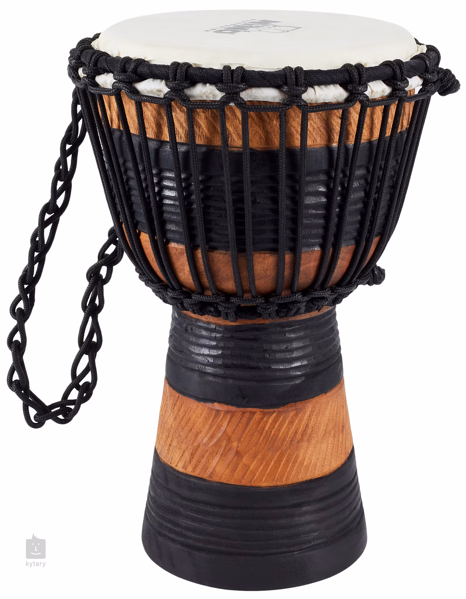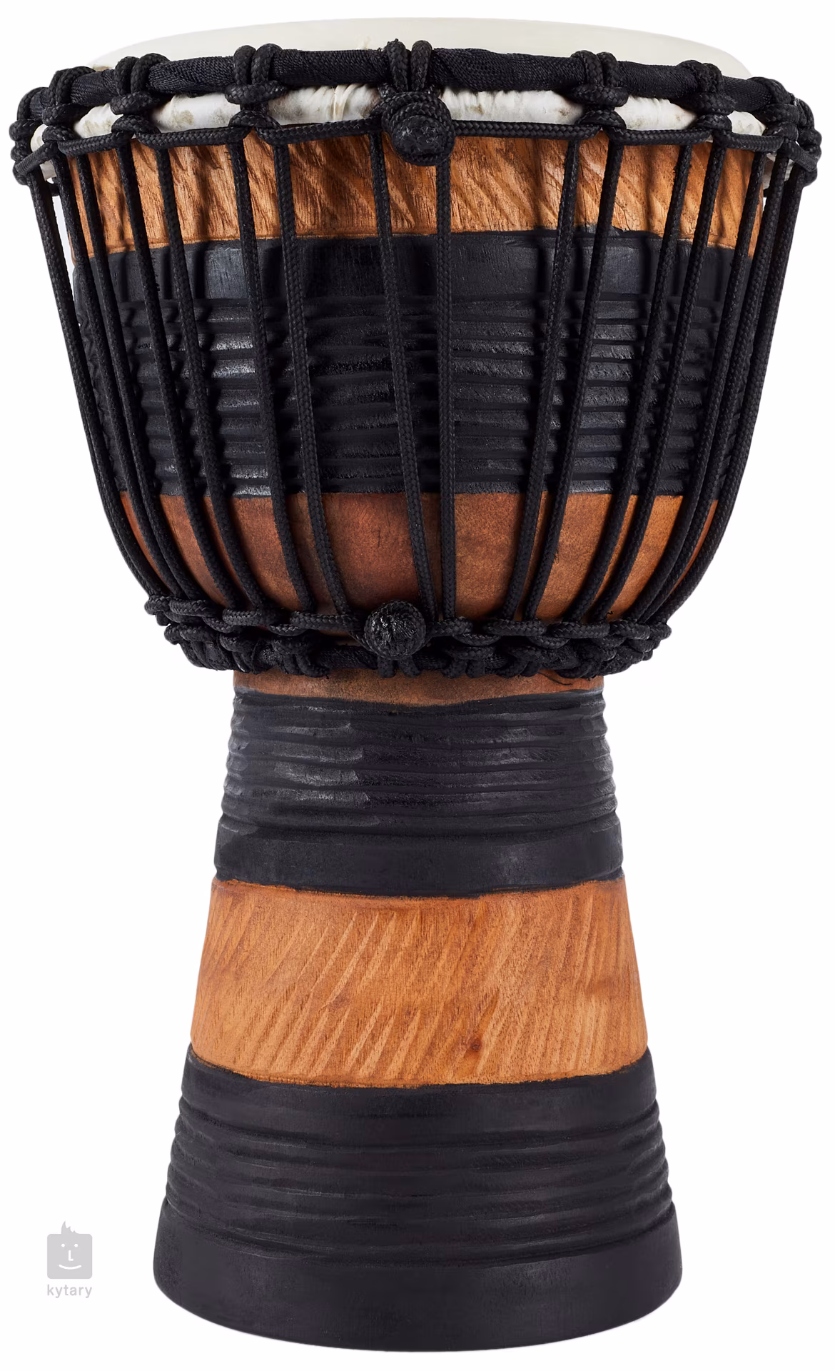 Diese besondere Djembe wird nach wirklich traditionellen Methoden hergestellt. Der größte Unterschied zu herkömmlichen Djemben ist die Stimmmethode, bei der keine Metallbeschläge, bestehend aus Reifen, Muscheln und Stimmschrauben, verwendet werden, sondern ein ausgeklügeltes System von Seilen.
