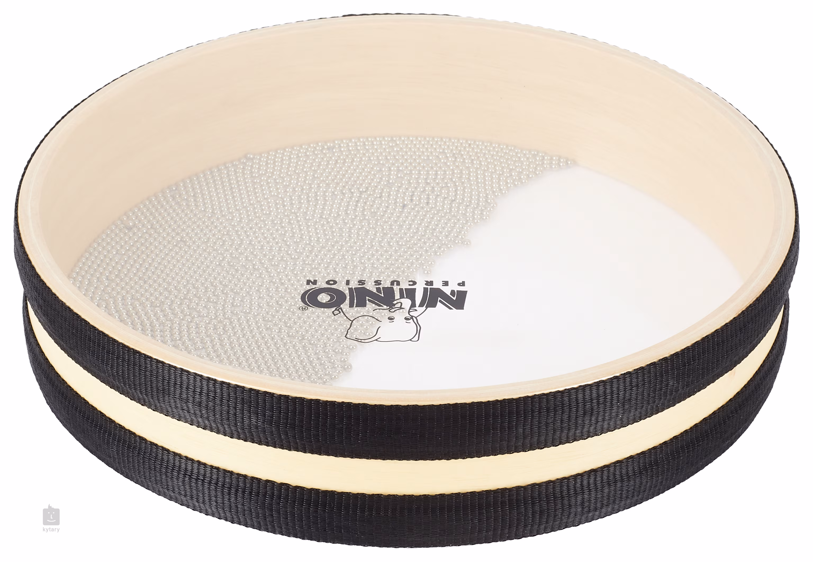 Diese Rahmentrommel gehört zu der so genannten Sea Drum Serie. Dank ihrer einzigartigen Konstruktion bieten sie einen völlig einzigartigen Klang. Für seine Herstellung wurde ein 10-Zoll-Reifen aus dem so genannten Rubber Wood, dem Holz des Hevea brasiliensis-Baumes, verwendet, an dessen beiden Seiten synthetische Bälge angebracht sind. Im Inneren befinden sich kleine Metallkugeln, die die typischen Geräuscheffekte erzeugen.