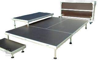 Die unterschiedlichen Größen der Bretter ermöglichen eine große Variabilität der zu bauenden Bühnen. Durch das einzigartige Verbindungssystem ist eine sehr einfache und schnelle Montage gewährleistet. Für den Zusammenbau der Bühne wird kein Werkzeug benötigt! Die Grundeinheit benötigt 4 Beine, das angrenzende Brett benötigt nur 2 Beine, jedes weitere Brett, das zwischen zwei "L"-Brettern eingefügt wird, benötigt nur 1 Grundbein. Die Beine können kombiniert werden: es gibt feste, nivellierbare, teleskopierbare oder Stahlbeine.