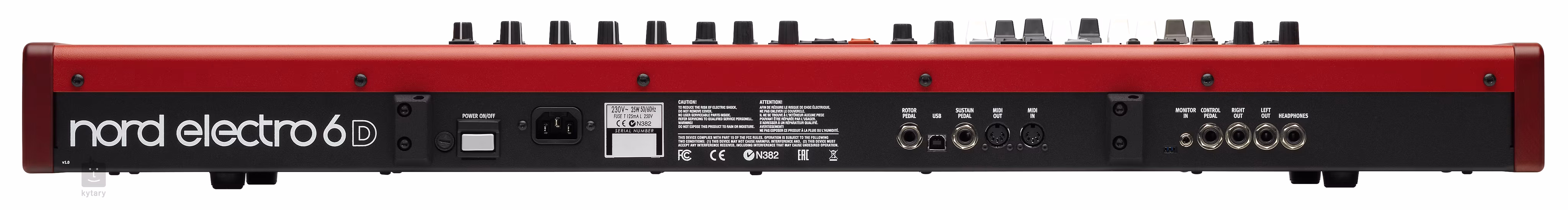 3x Pedal (control, sustain, rotary), 1x Jack 3,5 mm TRS, MIDI in