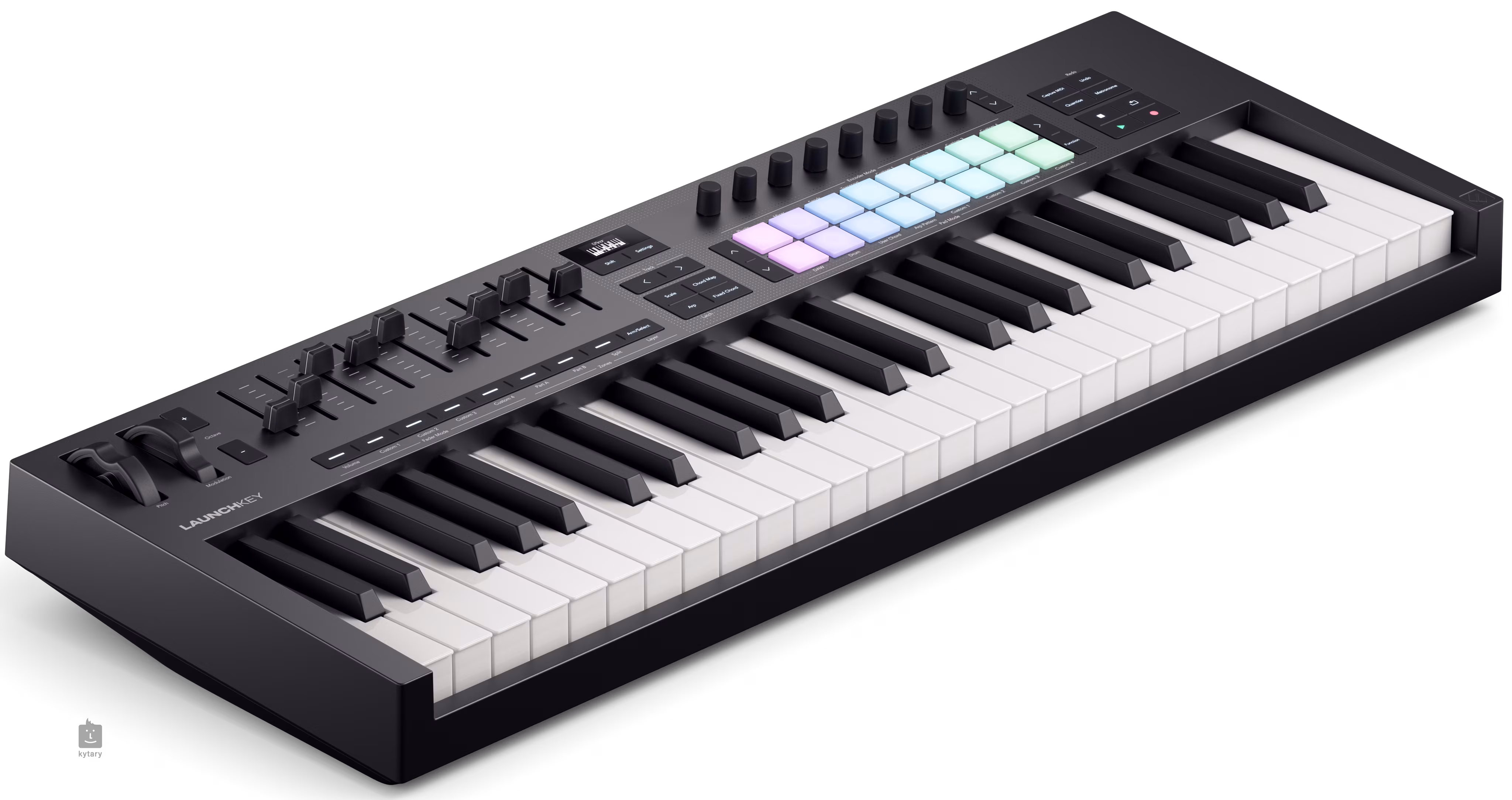 Der Novation Launchkey 49 ist ein leistungsstarker DAW-Controller mit einer halbgewichteten Wasserfall-Tastatur, acht stufenlosen Encodern, neun Fadern und 16 drucksensitiven Pads für Fingerdrumming und Clip-Triggering. Der Controller verfügt außerdem über kreative Akkord- und Skalenmodi, die mit dem OLED-Display zusammenarbeiten und es leicht machen, in der Stimmung zu bleiben.