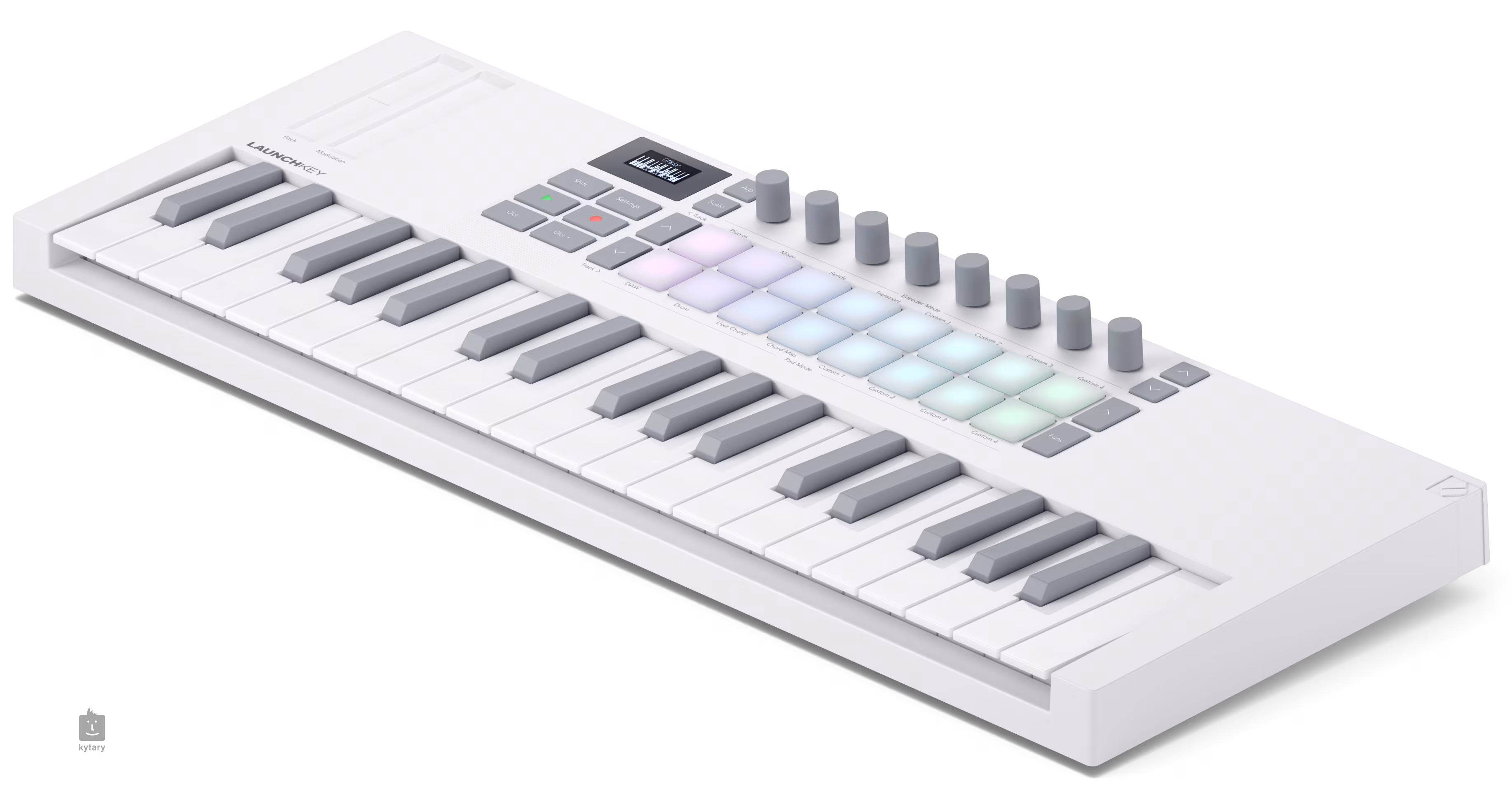 Der Novation Launchkey Mini 37 ist ein leistungsfähiger DAW-Controller mit einem Synth-Type-Mini-Keyboard, acht stufenlosen Encodern und 16 druckempfindlichen Pads für Fingerdrumming und Clip-Triggering. Der Controller verfügt außerdem über kreative Akkord- und Skalenmodi, die mit dem OLED-Display zusammenarbeiten und es einfach machen, in der Stimmung zu bleiben.