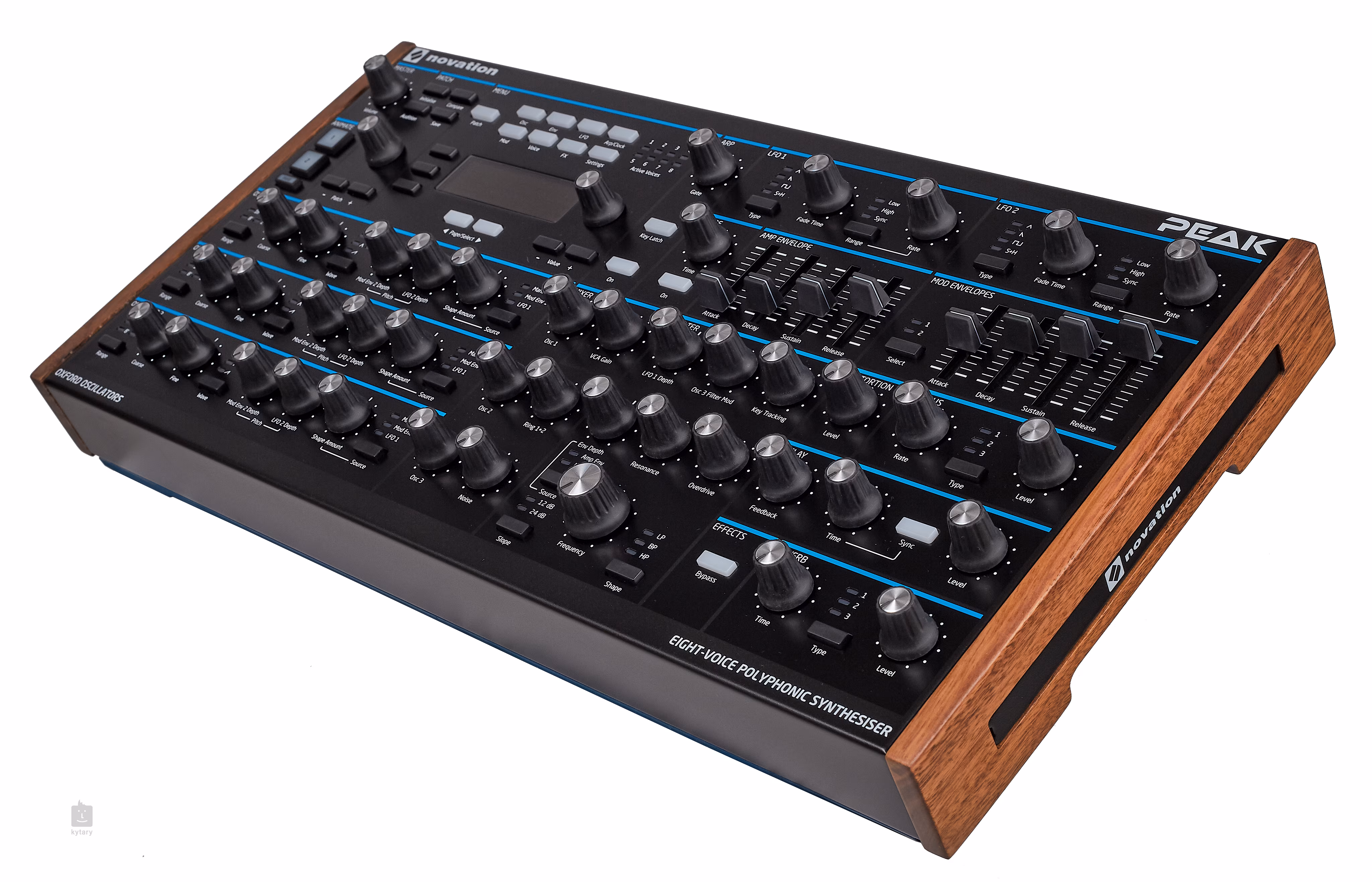 Peak ist ein Desktop-Synthesizer mit achtstimmiger Polyphonie und drei neuen Oxford-Oszillatoren pro Stimme. Die Oszillatoren klingen dank der NCO (Numerically Controlled Oscillator)-Technologie völlig analog, erhalten aber dank 17 digitaler Wavetables auch die Flexibilität der digitalen Welt. Der Synthesizer verfügt über ein variables analoges Filter mit Resonanz für jede Stimme, und es gibt drei Stufen der Verzerrung in der analogen Schaltung.