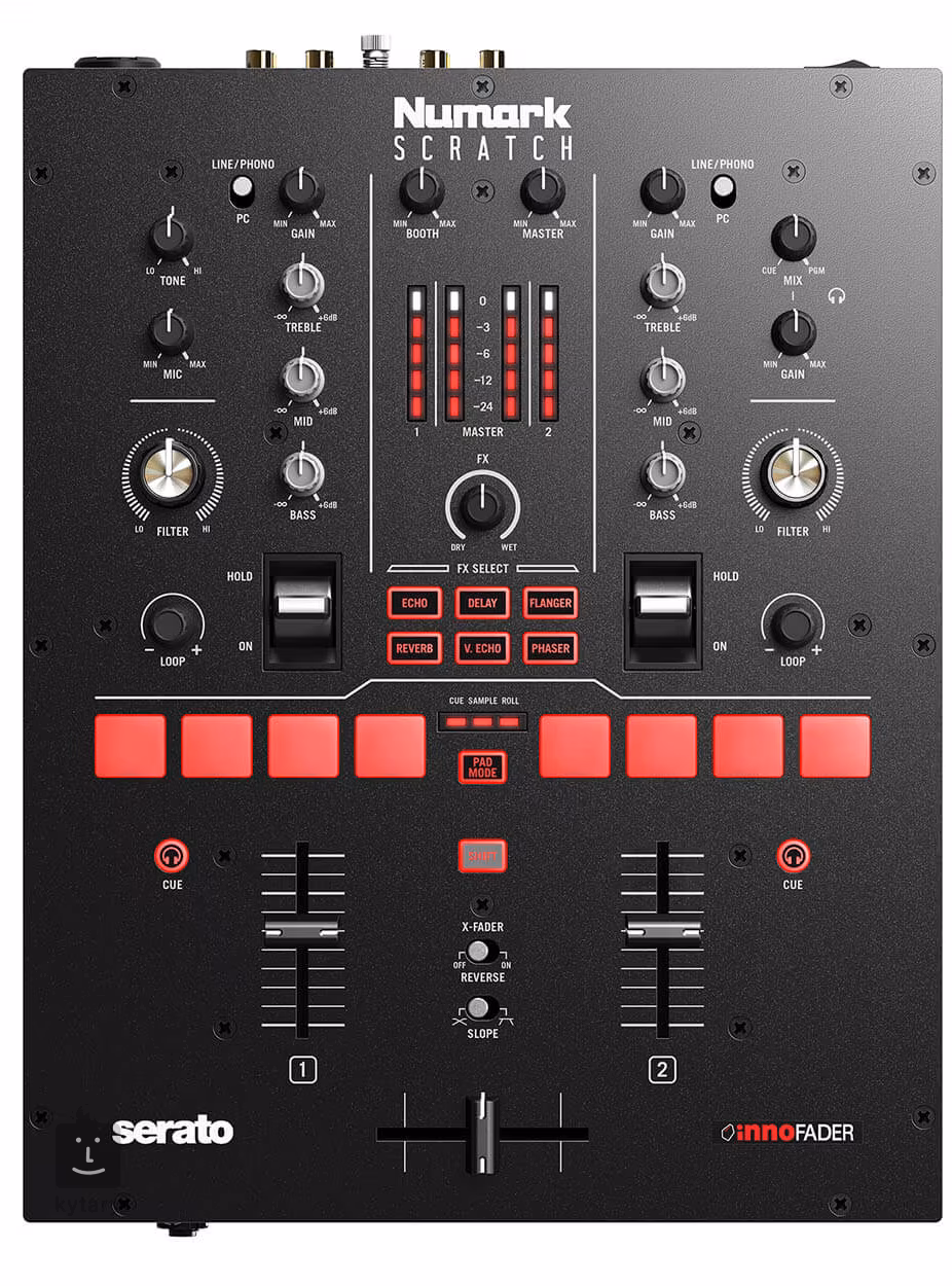 Ein digitaler Zweikanal-Mixer für alle professionellen und aufstrebenden DJs mit einem 24-Bit-Audio-Interface und einem unübertroffenen Signal-Rausch-Verhältnis (108 dB). Numark Scratch ist vollständig kompatibel mit der beliebten Serato DJ-Software DJ PRO (Lizenz enthalten). Ebenfalls enthalten ist das Prime Loops Sound Pack (im Wert von 200USD) und die SoundSwitch lightning control SW (2 Monate Zugang).