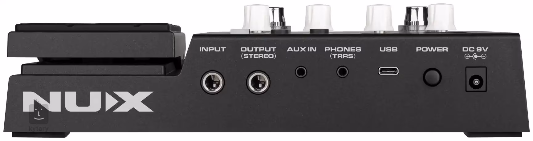 Auf der Rückseite befinden sich ein Standard-Instrumenten-Mono-Eingang und ein Mono-Ausgang, ein Aux-Eingang für die Wiedergabe externer Audioquellen und ein TRRS-Kopfhörerausgang mit 3,5-mm-Klinke, an den man ein Headset mit Kopfhörer und Mikrofon anschließen und streamen kann. Außerdem gibt es einen USB-C-Anschluss für die direkte Aufnahme in Ihre DAW (Sie können den Multieffekt als USB-Soundkarte verwenden), die Aktualisierung der Firmware oder die Verbindung mit der QuickTone-Bearbeitungssoftware. Der Anschluss unterstützt auch OTG, sodass Sie eine Verbindung zu Ihrem Smart-Gerät herstellen und direkt darauf aufnehmen können. Die Stromversorgung erfolgt über einen 9V-Adapter.