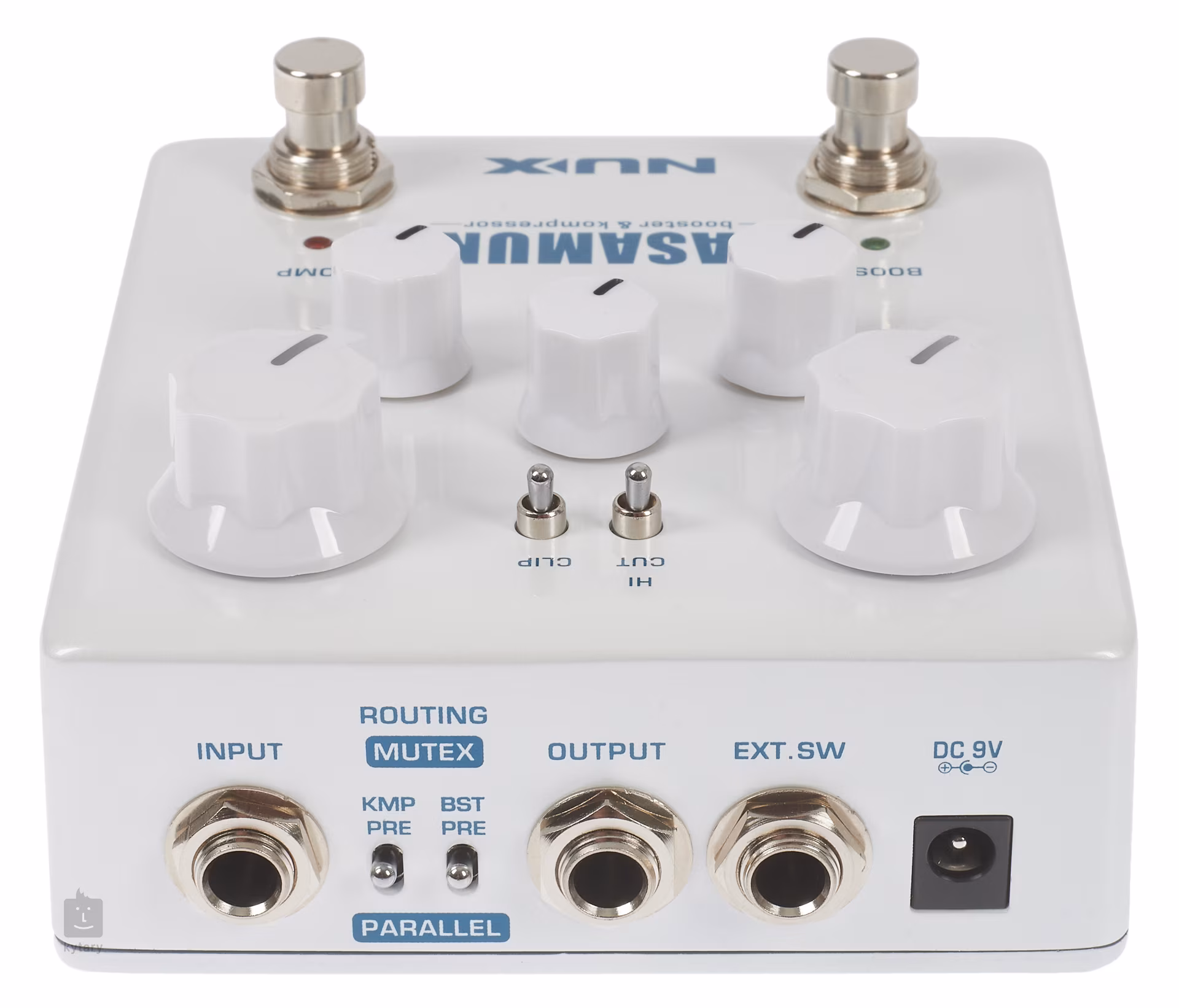 Der NBK-5 Masamune beherbergt einen Booster und einen Kompressor mit einstellbarem Routing in einem Metallgehäuse. Der Booster bietet eine Verfärbung/Verstärkung des Sounds mit möglicher Höhenbeschneidung (Hi-Cut-Schalter), die Kompressor-Sektion hilft Ihnen, das Eingangs- und Ausgangssignal perfekt auszubalancieren, die gewünschte Stärke der Kompression/Verstärkung und die Transparenz der Kompression einzustellen, um den Gitarrensound in voller Kraft und Brillanz erstrahlen zu lassen.