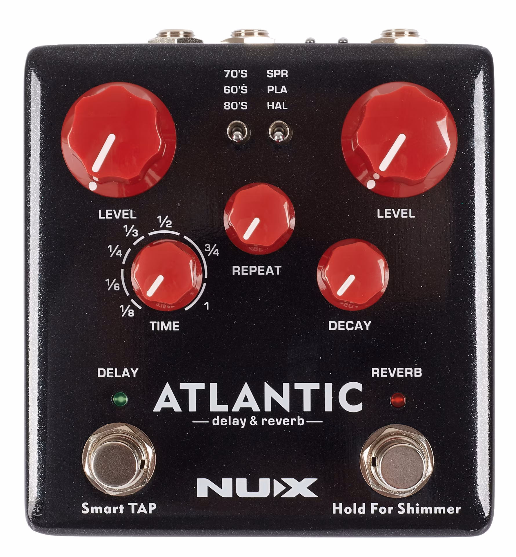 Der NUX Atlantic Gitarreneffekt bietet eine beliebte Kombination aus Delay- und Reverb-Effekten - insbesondere den 60er Jahre Tape Echo Sound, das 70er Jahre BBD Analog Delay, das 80er Jahre Digital Delay, Spring Reverb, Plate Reverb und Hall Reverb. Die neuesten Algorithmen zusammen mit der Core Image Technologie bringen nicht nur diese historischen Klassiker, sondern auch moderne Shimmer- und Freeze-Effekte. Darüber hinaus erkennt die patentierte Smart TAP-Funktion automatisch, ob Sie den Delay-Effekt ein- oder ausschalten oder die Tap-Tempo-Funktion nutzen möchten.