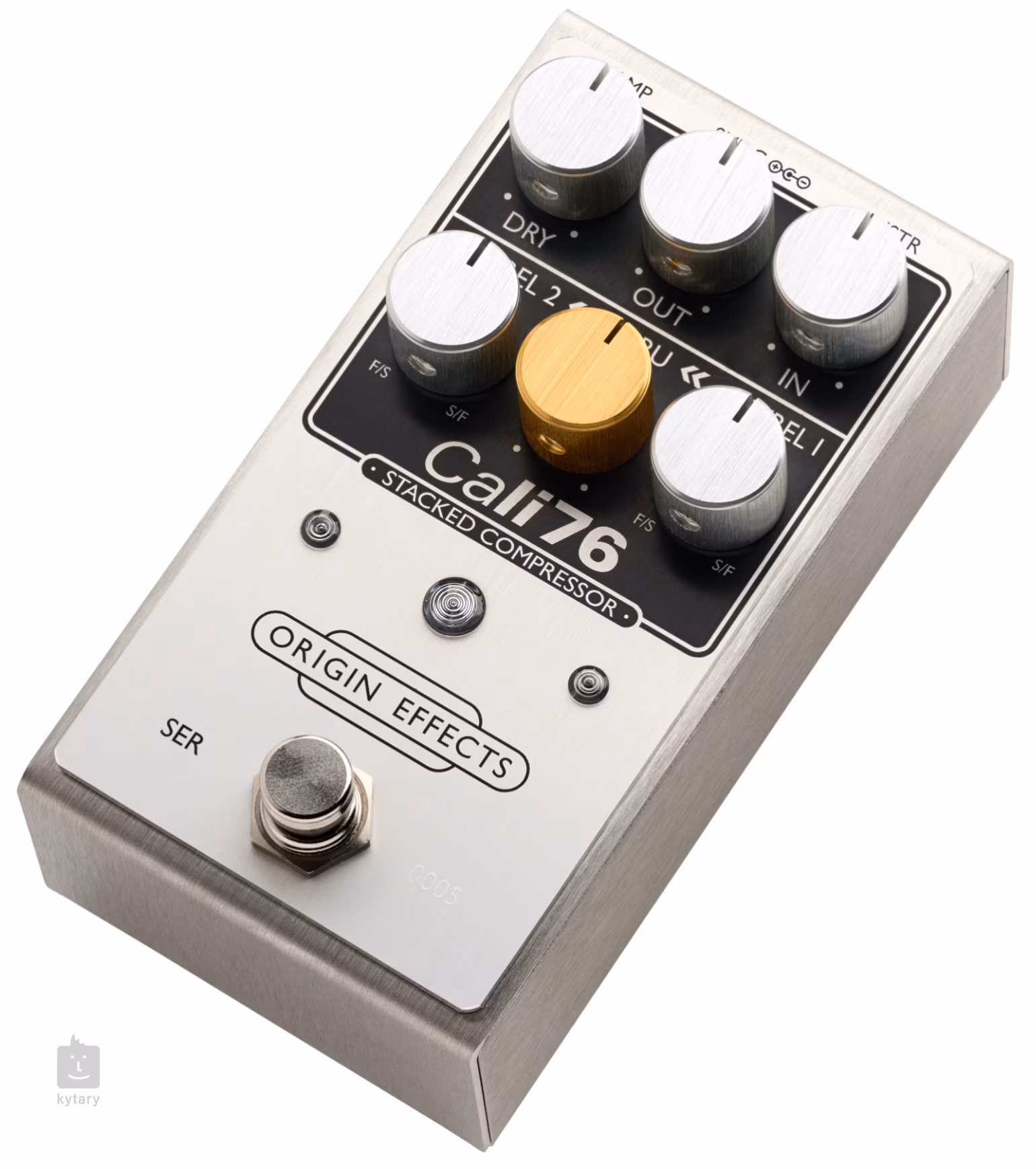 Der Cali76 Stacked Compressor von Origin Effects ist ein Zweiphasen-Pedalkompressor mit zwei in Reihe geschalteten FET-Kompressoren, die einen extrem komprimierten Cleansound, einen angenehm weichen Overdrive und ein nahezu unendliches Sustain liefern. Die Box basiert auf UREIs legendärem 1176 Peak Limiter-Studiogerät, das sich durch seinen sanften Analogsound und sein ultraschnelles Attack und Release auszeichnet. Diese kompakte Pedalversion bietet Ihnen eine Kompression in Studioqualität, die Ihren Gitarrenton von Grund auf verändern kann. Es handelt sich um eine aktualisierte Version der früheren Cali76 Stacked Edition, die sich durch einen größeren Headroom, eine geringere Größe und die Möglichkeit eines 9-Volt-Netzteils auszeichnet (die Spannung wird dann im Pedal auf 24 V erhöht).
