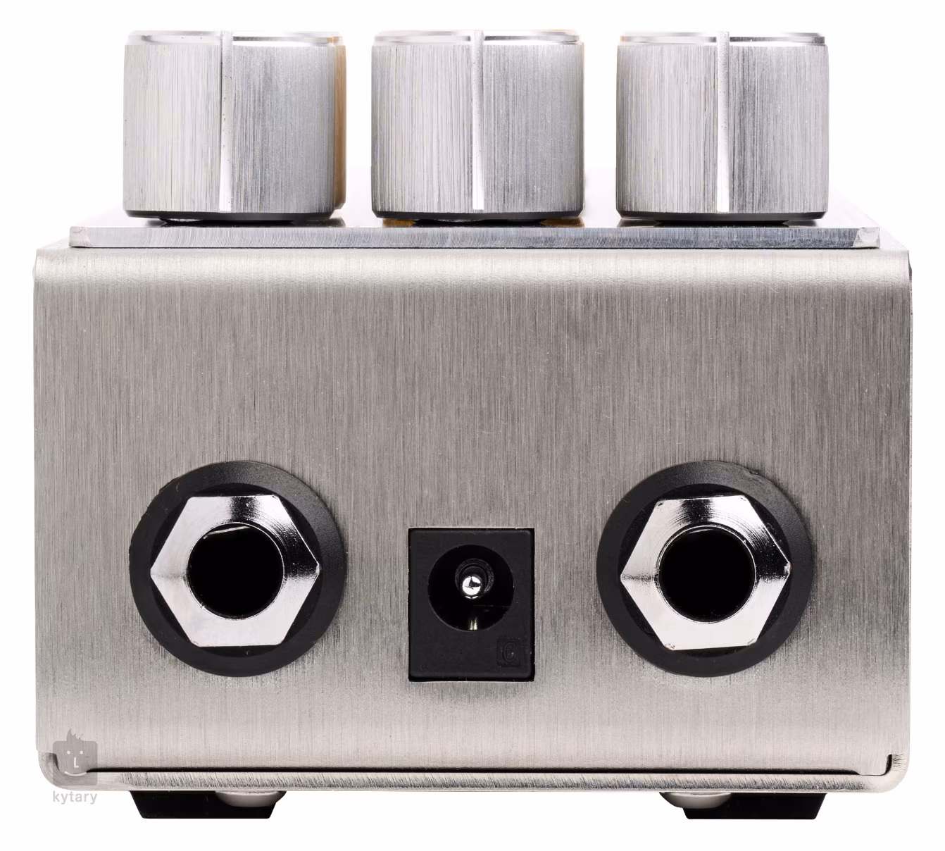 Auf dem Bedienfeld befindet sich ein In-Potentiometer, mit dem sich die Verstärkung des Vorverstärkers einstellen lässt, von dem aus das Signal an den ersten Kompressor weitergeleitet wird. Die Box verfügt außerdem über einen separaten Attack/Release-Regler für jeden der Kompressoren und einen Thru-Regler, mit dem der Pegel des Signals eingestellt wird, das vom ersten zum zweiten Kompressor in Reihe geleitet wird. Das Dry-Potentiometer regelt den Anteil des trockenen Signals im resultierenden Sound, und Out steuert die Lautstärke des resultierenden Signals am Ausgang. Die Box ist als gepufferter Bypass verdrahtet, so dass sie Ihr Gitarrensignal anregen kann, das auf dem Weg durch lange Effektketten und endlose Kabel ausklingt. Die gesamte Elektronik ist in einem soliden Metallgehäuse untergebracht. Die Stromversorgung erfolgt über einen 9-18-Volt-Adapter.