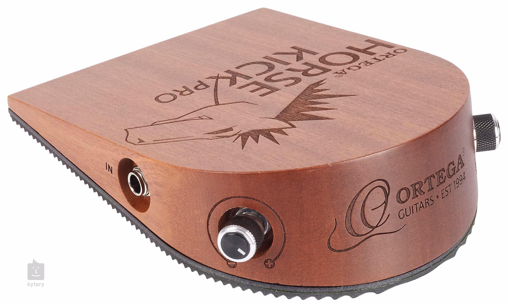 Ortega Horsekick ist ein digitaler Percussion-Effekt, der sich beispielsweise zum rhythmischen Begleiten beim Gitarrenspiel eignet. Er enthält fünf Samples von Percussion-Sounds – Tamburin, Cabasa, Cowbell, Bassdrum und Bass-Cajon. Der Klang ertönt immer, wenn Sie auf das Pedal treten. Der Effekt ist außerdem druckempfindlich, sodass Sie auch mit Dynamik arbeiten können. Eine praktische Funktion dieses Effekts ist die Möglichkeit, ein Instrument direkt anzuschließen und mit dem Lautstärkeregler den gewünschten Pegel des perkussiven Klangs, der aus dem Combo ertönt, einzustellen. Das Instrumentensignal wird beim Durchlaufen des Effekts in keiner Weise beeinflusst. Ein Netzteil ist im Lieferumfang enthalten. • Digitaler Percussion-Effekt • Material: massives Sapeli • Enthält 5 Samples: Tamburin, Cabasa, Cowbell, Bassdrum, Cajon-Bassklang • Ergonomisches Design für einfache Bedienung • Bedienung: Lautstärke, Klangumschalter • Ein- und Ausgang: 6,3-mm-Klinkenstecker