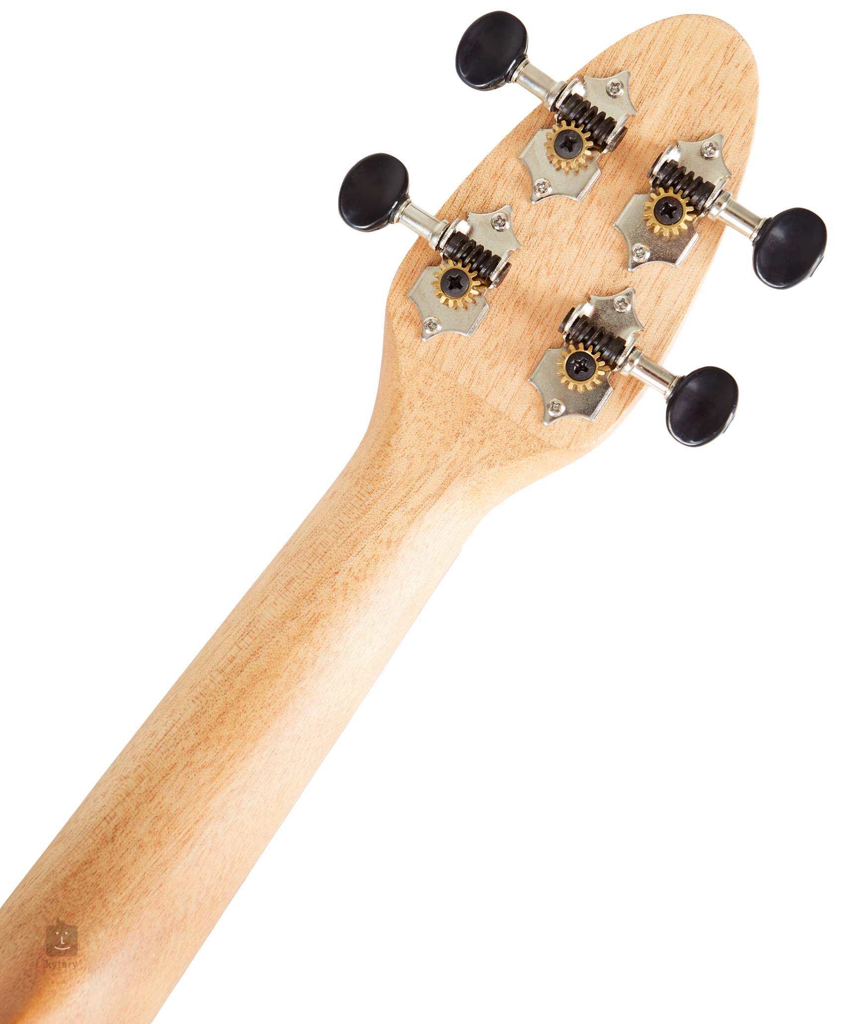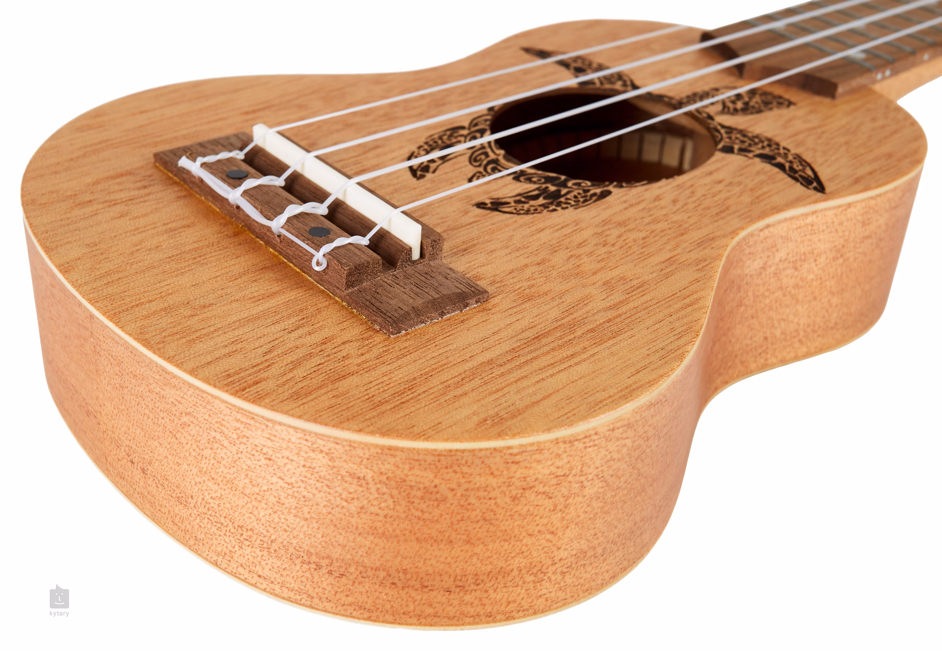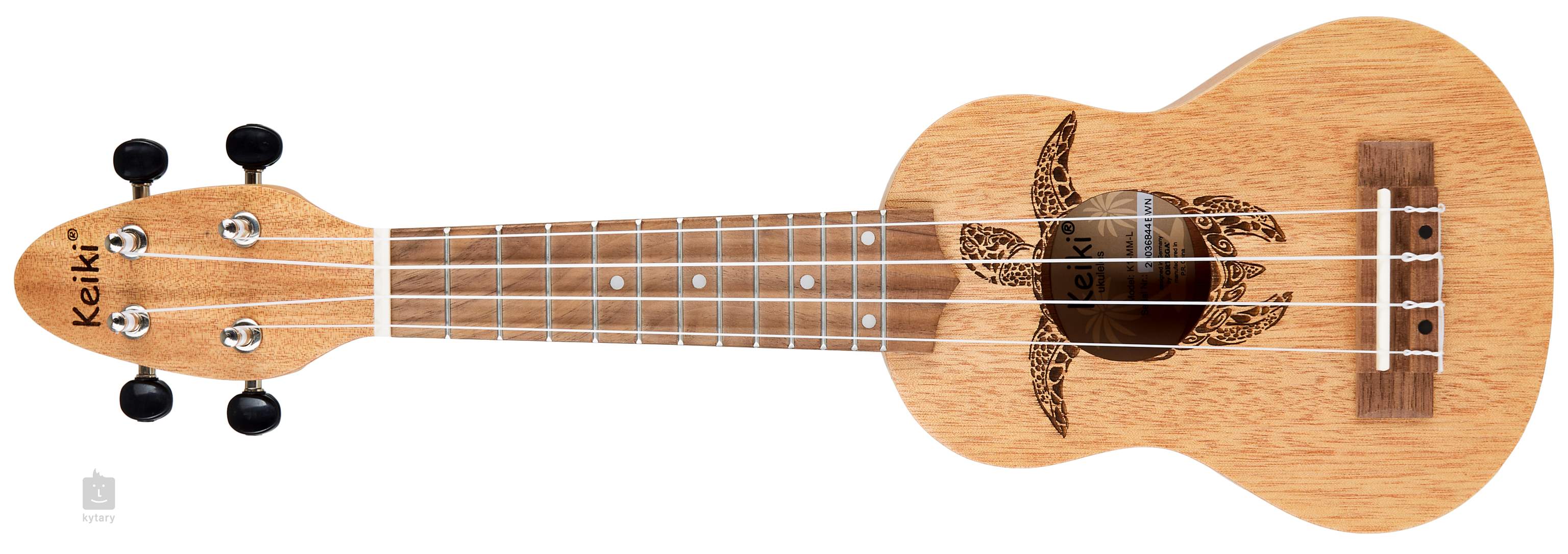 Der Korpus dieser Ukulele ist aus Okoumé-Sperrholz gefertigt. Auf den Okoumé-Hals ist ein Griffbrett aus Walnussholz mit zwölf Bünden geklebt. Die Saiten sind in einem Nussbaum-Griffbrett und verchromten offenen Mechaniken mit schwarzen Wirbeln montiert. Das Design des Instruments wird durch eine Lasergravur einer Schildkröte aufgewertet, die durch das Schallloch der Ukulele schwimmt.