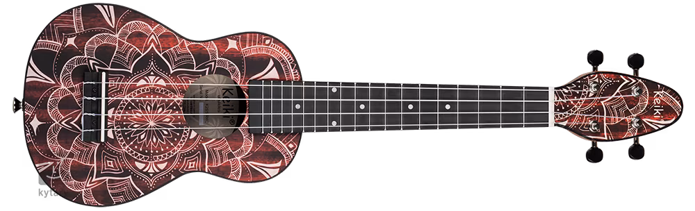 Die K2SS-Ukulelen aus der Keiki-Serie von Ortega kombinieren den kompakteren Korpus einer Sopran-Ukulele mit dem längeren Hals und Griffbrett einer Ukulele in Konzertgröße (vom Hersteller als Soprano Super Scale bezeichnet). Die Vorderseite der Instrumente ist mit bunten, von der Straßenkunst inspirierten grafischen Motiven verziert.