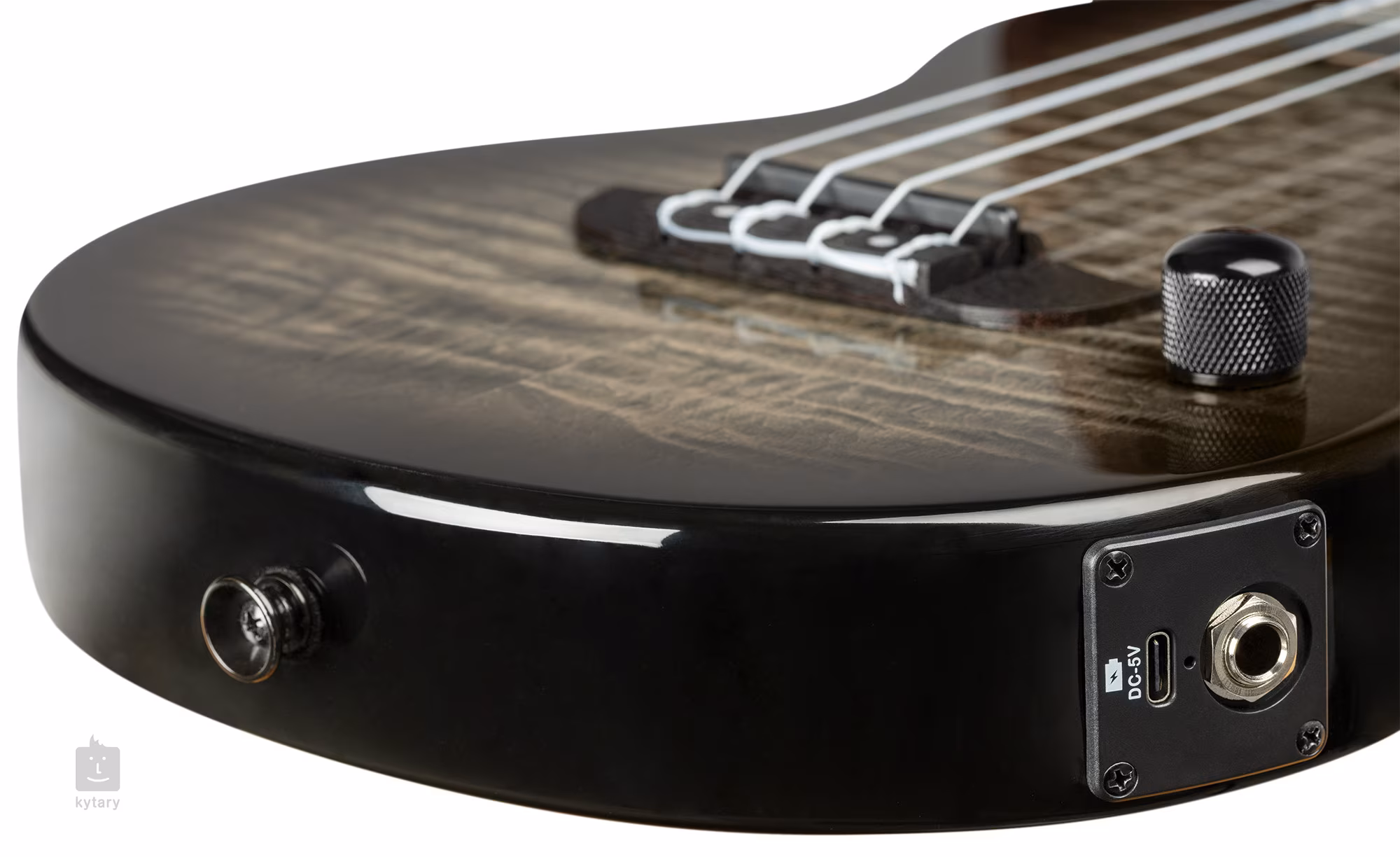Das MagusExpress-System kümmert sich um das Soundsystem der Ukulele. Der eingebaute Akku wird einfach über das mitgelieferte USB-C-Kabel aufgeladen. Die Saiten werden von den hauseigenen Stimmmechaniken und dem Purpleheart-Griffbrett gehalten.
