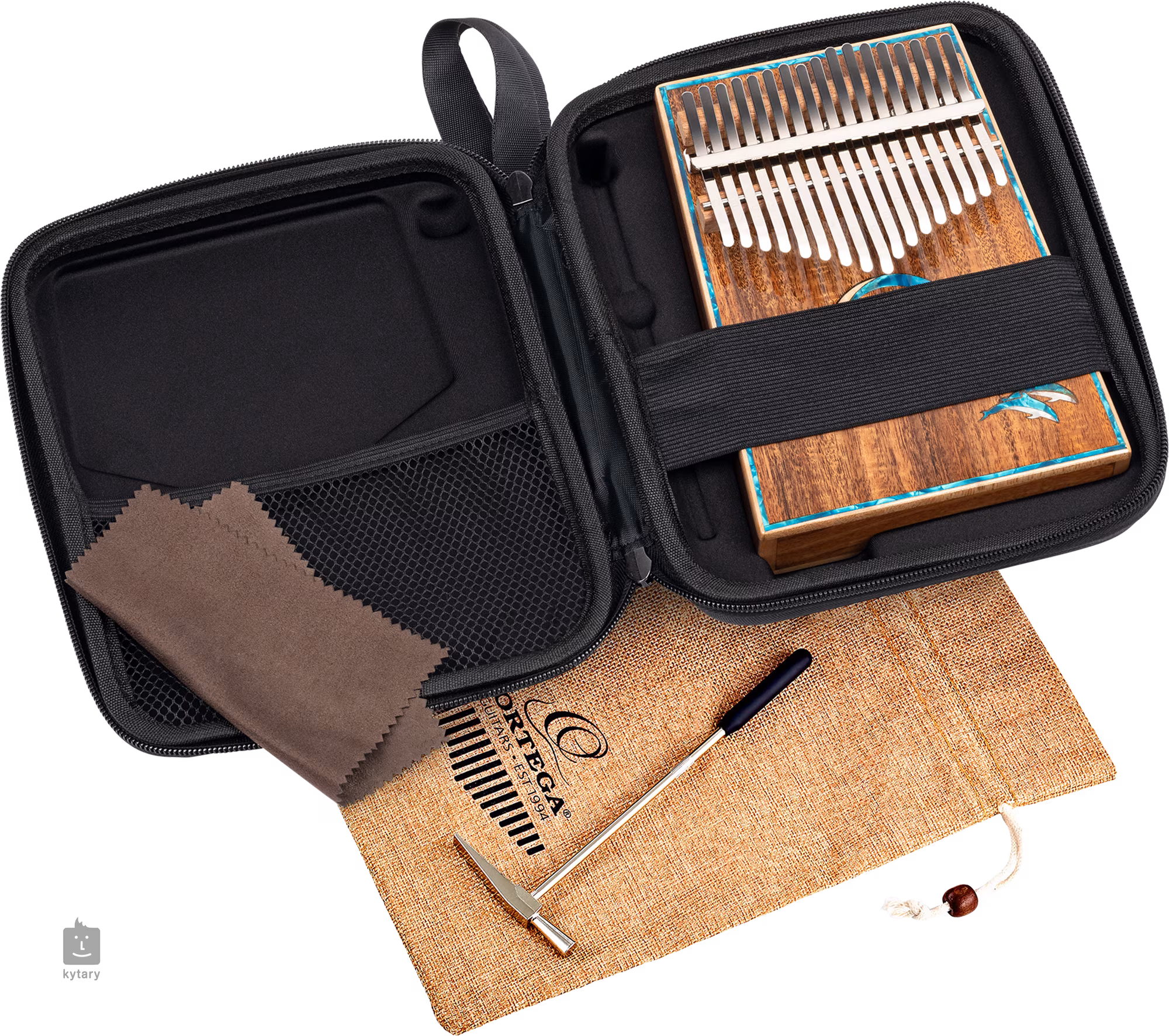 Die Kalimba OKB30TH feiert das 30-jährige Bestehen von Ortegas beliebtem Unternehmen. Siebzehn Stahltasten auf massivem Akazienholz, verziert mit türkisfarbenen Perlen-Delphinen, sorgen für einen schönen Ton mit langem Sustain. Im Lieferumfang enthalten sind ein Luxuskoffer mit dem Jubiläumsemblem, eine Schutztasche mit Kordelzug, ein Poliertuch und ein Stimmhammer.