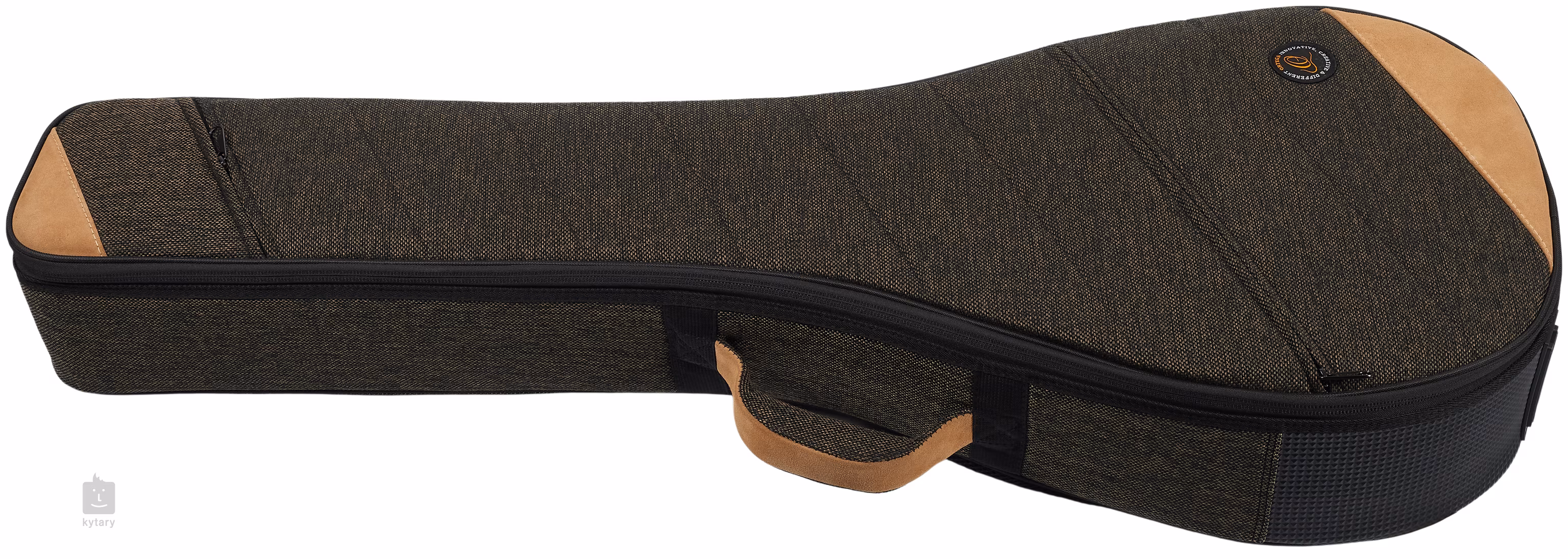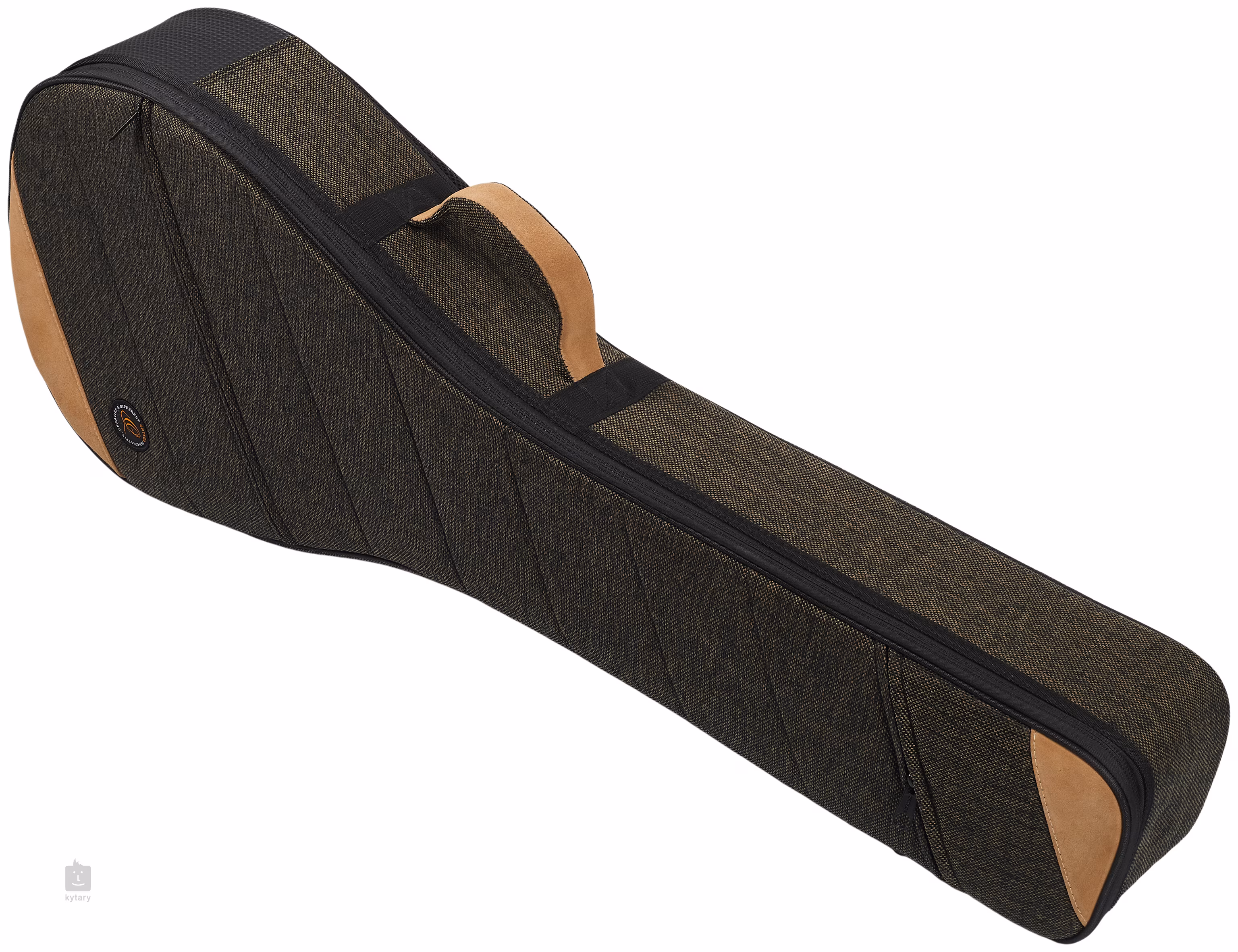 Die Tasche besteht aus einer Kombination aus Leinen, Baumwolle und echtem Wildleder, was ihr ein stilvolles Aussehen und außergewöhnliche Strapazierfähigkeit verleiht. Für den Schutz des Instruments sorgen eine 22 mm dicke Polsterung und ein 5 mm starker Rahmen aus gehärtetem Polyethylen, der der Tasche ihre Festigkeit verleiht. Im Inneren der Tasche ruht Ihr Banjo in einer weichen Auskleidung aus schwarzem Samt, und sein Hals passt perfekt in eine weiche Halterung mit Sicherheits-Klettverschlüssen. An der Außenseite befinden sich zwei geräumige Taschen zur Aufbewahrung von Zubehör, zwei bequeme, längenverstellbare Schultergurte und ein äußerst komfortabler Wildledergriff.