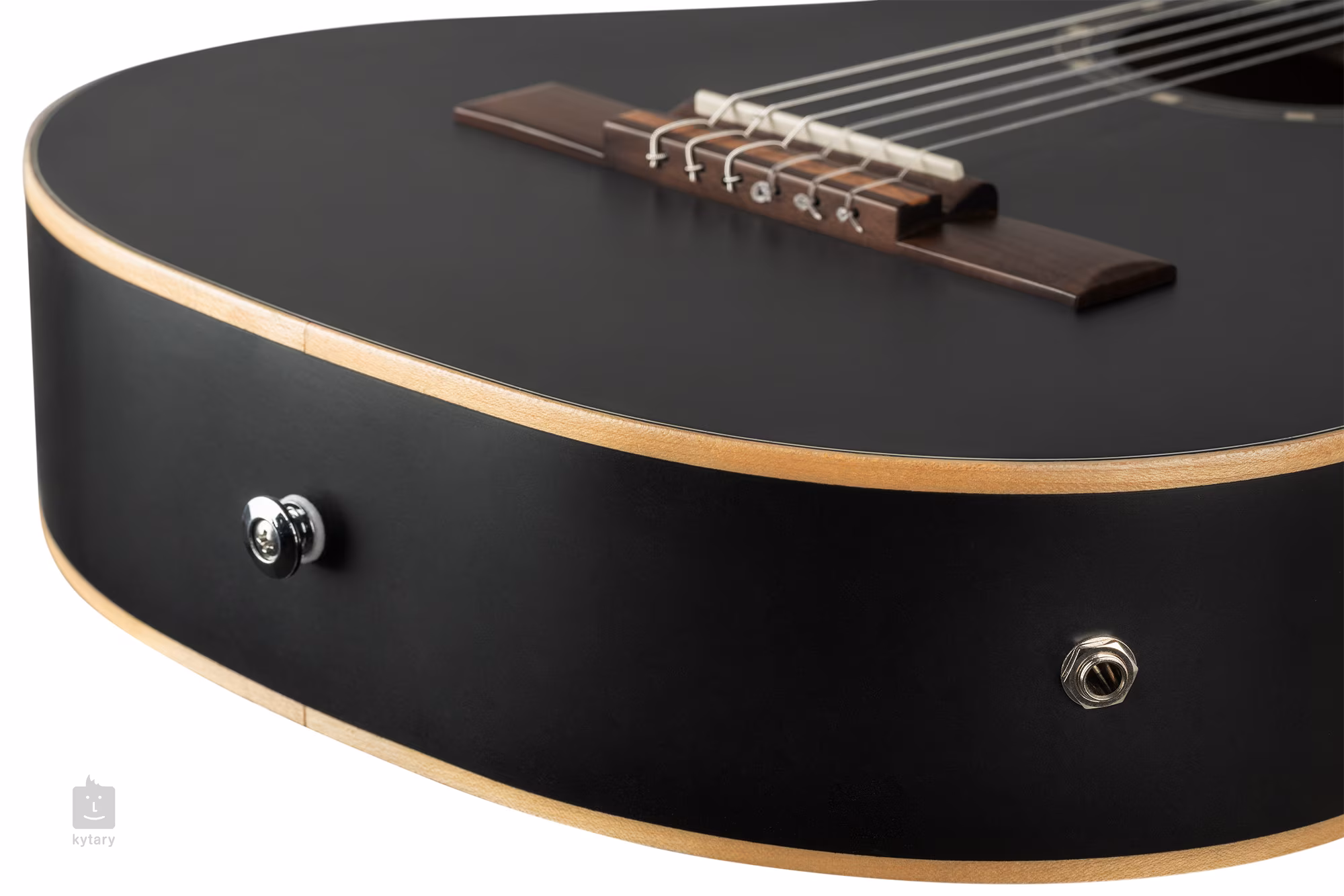 Die Saiten sind in einer klassischen offenen Mechanik mit imitierten Perlmuttwirbeln und einem Nussbaum-Griffbrett mit zwölf Löchern aufgezogen. Das stilvolle Finish wird durch die ABS-Kunststoffleiste und die dekorative Rosette unterstrichen.