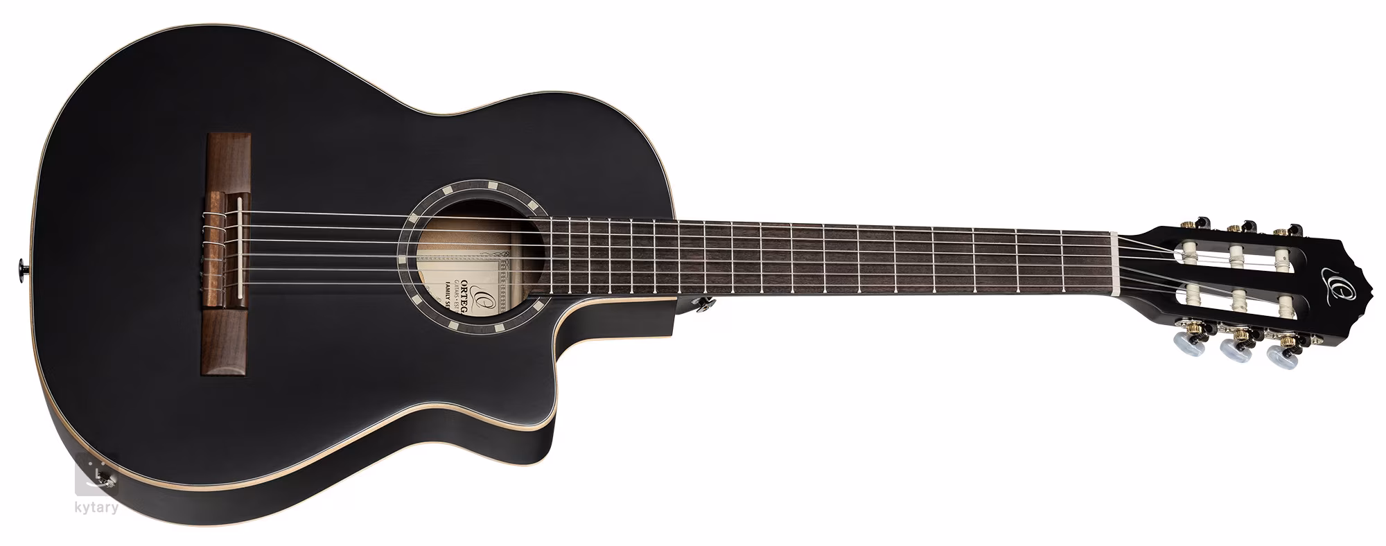 Die Ortage RCE125 3/4 SBK ist eine elektroakustische Konzertgitarre mit dünnem, kleinerem Korpus in 3/4-Größe, die für Kinder und Spieler geeignet ist, die Schwierigkeiten mit dem Griffbrett von Gitarren mit Standardstärke haben. Der Korpus der Gitarre ist aus laminierter Fichte und Mahagoni gefertigt. Der Mahagoni-Hals ist auf ein Walnuss-Griffbrett mit neunzehn Bünden geleimt. Der Hals wird durch eine Zwei-Wege-Verstrebung verstärkt.