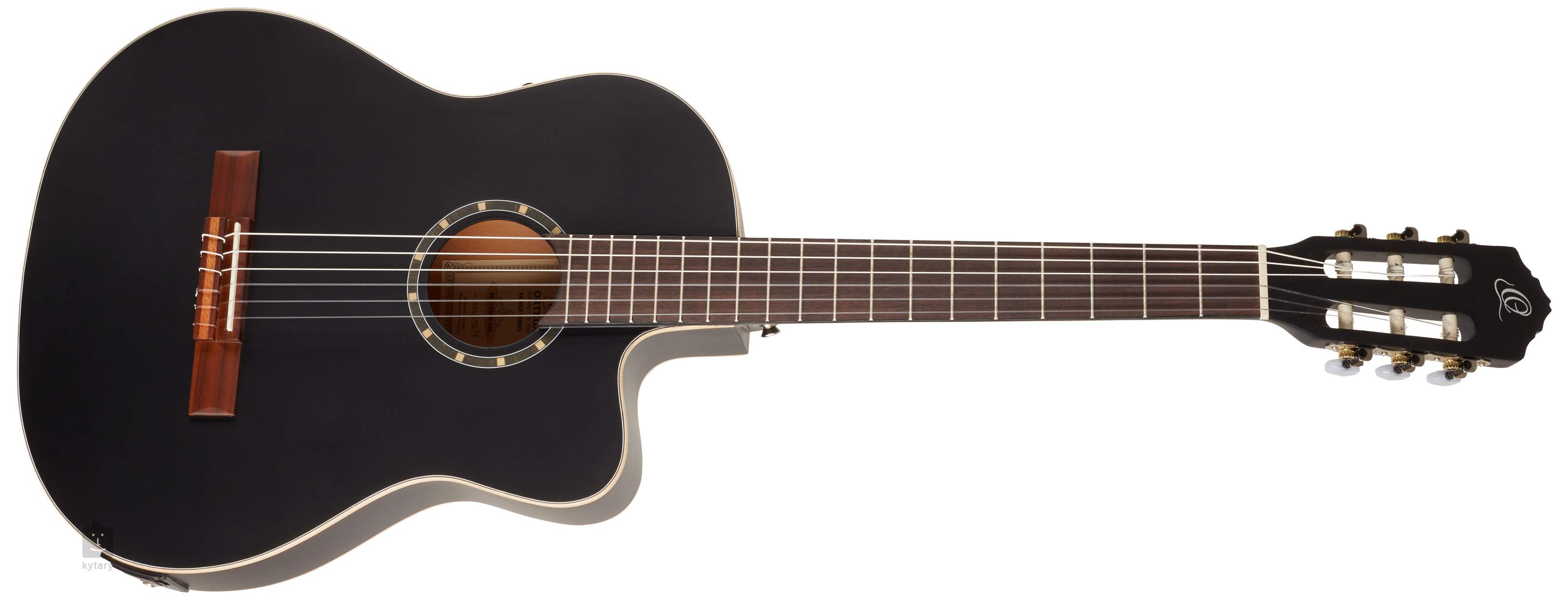 Die klassischen Gitarren der Marke Ortega aus der Family-Serie sind die ideale Wahl für Anfänger, die ein hochwertiges Instrument zu einem erschwinglichen Preis suchen. Kommen Sie vorbei und probieren Sie sie aus. Es handelt sich um Instrumente mit einem mehrschichtigen Korpus aus Sperrholz aus Fichte oder Zeder und Zargen und Boden aus laminiertem Mahagoni, einem massiven Mahagonihals mit zweiseitiger Verstärkung und einem Griffbrett aus Nussbaumholz. Die Modelle mit der Bezeichnung SN (small neck/slim neck) haben einen schmaleren Hals (48 mm am Nullbund statt der üblichen 52 mm) – das Spielen dieser Instrumente werden daher Spieler mit kleineren Fingern, aber auch Musiker schätzen, die an die Halsmaße von Akustikgitarren gewöhnt sind. Die Saiten sind in klassischen offenen Mechaniken und einem Steg aus Walnussholz mit zwölf Löchern befestigt. Traditionelle Zierelemente sind die Einfassung, die Rosette und das Firmenlogo auf dem Kopf des Instruments. Dieses spezielle Modell ist zusätzlich mit Ortega MagusPro-Elektronik mit integriertem Stimmgerät, Dreifach-Equalizer, Lautstärkeregler und Phase-Taste mit Phasenumkehrfunktion (Rauschunterdrückung) ausgestattet. Die Gitarre wird in einer Instrumententasche (Gig Bag) geliefert.