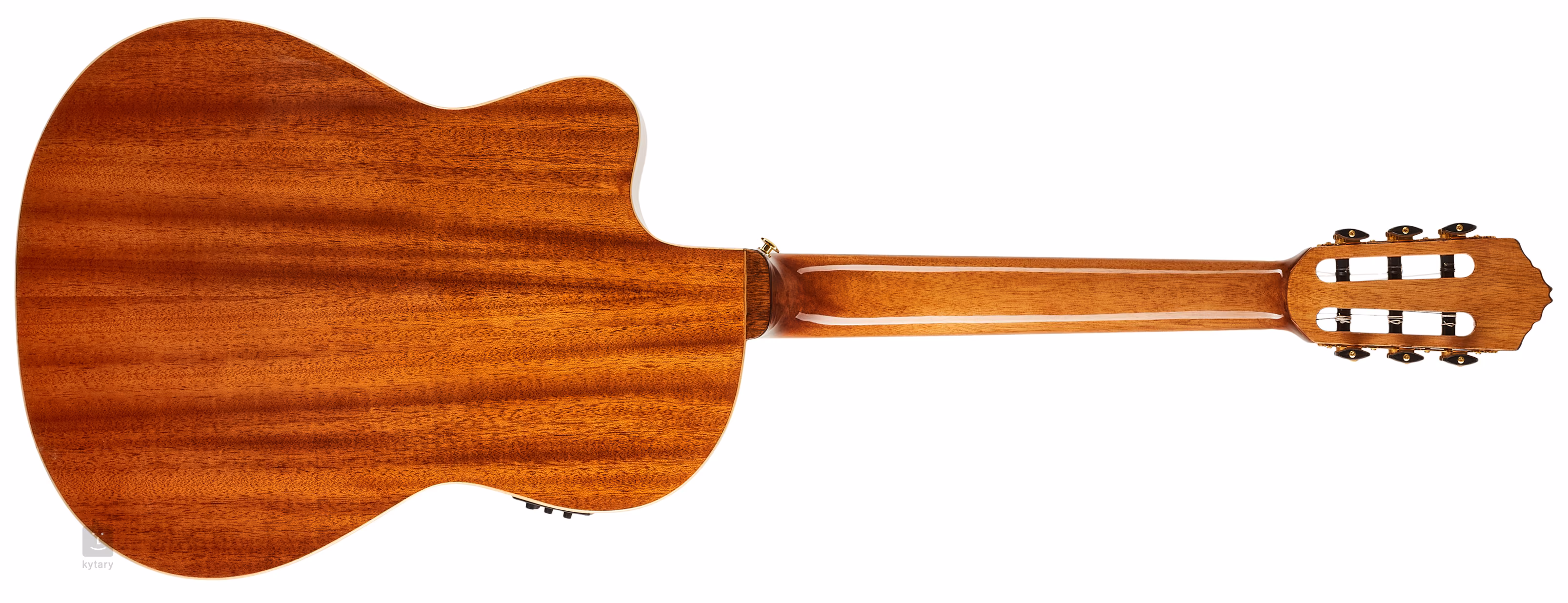 Der Korpus dieser Gitarre besteht aus massiver Alaska-Fichte vorne und Sapele Boden und Zargen. Der Mahagonihals ist auf ein Feigengriffbrett mit zweiundzwanzig Bünden geleimt. Die Saiten werden von Stimmmechaniken im klassischen Design und einem Zwölfloch-Griffbrett aus Feigenholz gehalten. Die schöne Verarbeitung wird durch die helle Umrandung des Korpus, eine Rosette aus Perlmutt und Holzringen (Ahorn, Nussbaum) und das Firmenlogo auf der Kopfplatte unterstrichen.