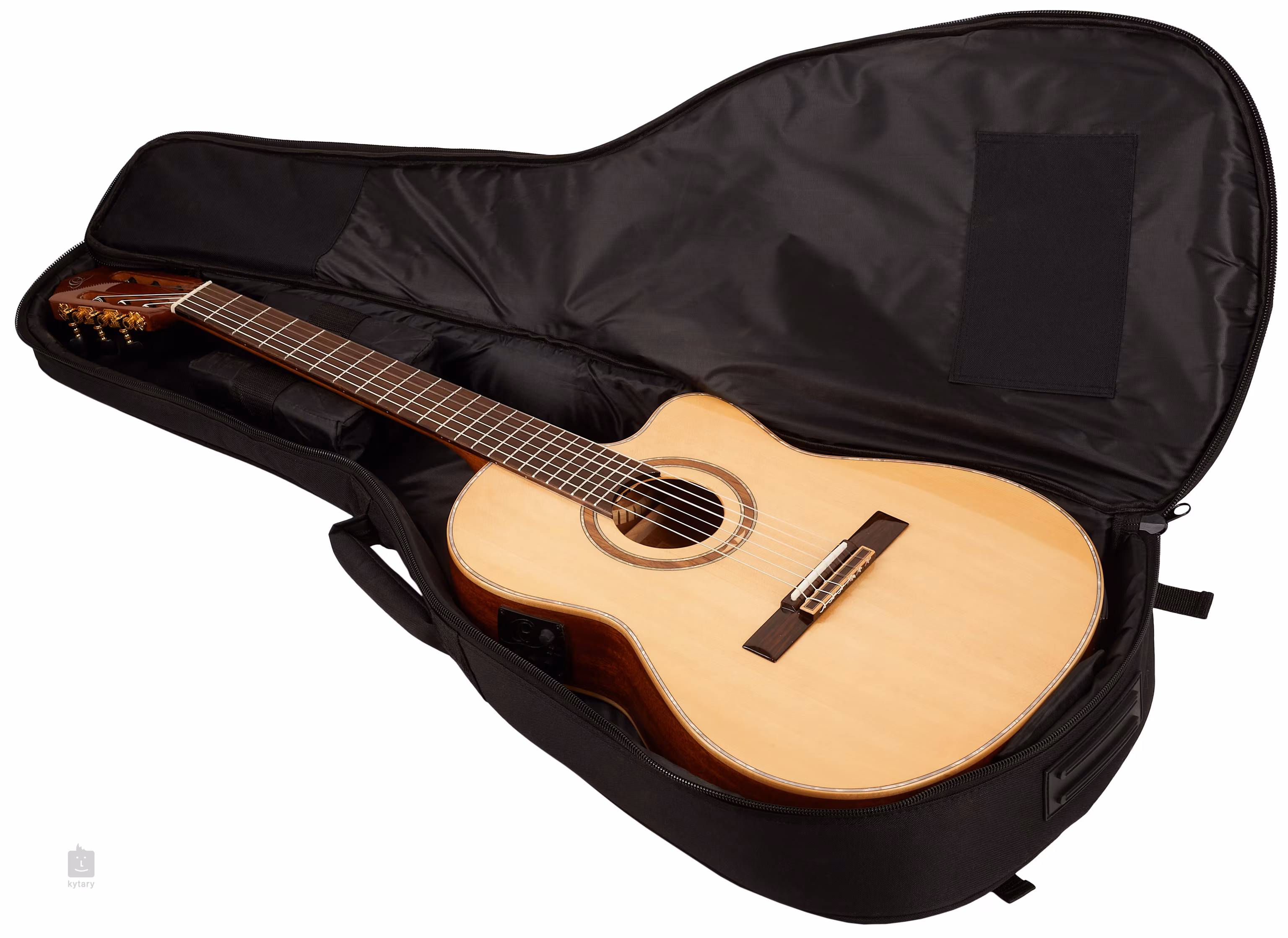 Dieses Modell ist außerdem mit der Ortega MagusPro-Elektronik mit integriertem Tuner, Dreiband-Equalizer, Lautstärkeregler und Phase-Taste mit Phasenumkehrfunktion (Rauschunterdrückung) ausgestattet.
