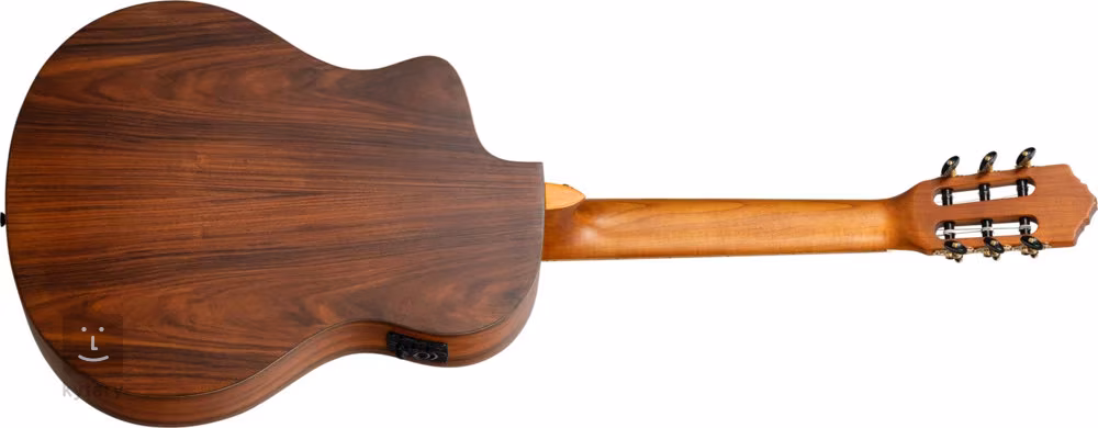 Die Decke der klassischen elektroakustischen Gitarre RCE24RO besteht aus massivem gebranntem Fichtenholz, der Boden und die Zargen sind aus laminiertem Pau Ferro gefertigt. Der Ahornhals ist mit einem Griffbrett aus Jatoba-Holz mit neunzehn Bünden versehen. Nicht nur die Decke aus massiver Fichte, sondern auch der Boden, die Zargen, der Hals, das Griffbrett und der Steg des Instruments wurden einem Wärmebehandlungsprozess unterzogen.