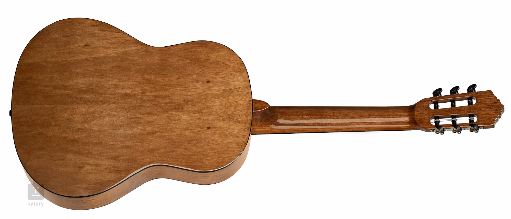 Dies ist ein erschwingliches Set, das für Anfänger geeignet ist. Der Korpus der Gitarre ist aus Fichten- und Katalpa-Sperrholz gefertigt, das Griffbrett aus Walnussholz ist mit neunzehn Bünden versehen und auf einen Mahagoni-Hals geklebt. Das schlichte Design ist dezent mit einer Rosette, schwarzem ABS-Binding und einem Logo auf der Kopfplatte verziert.