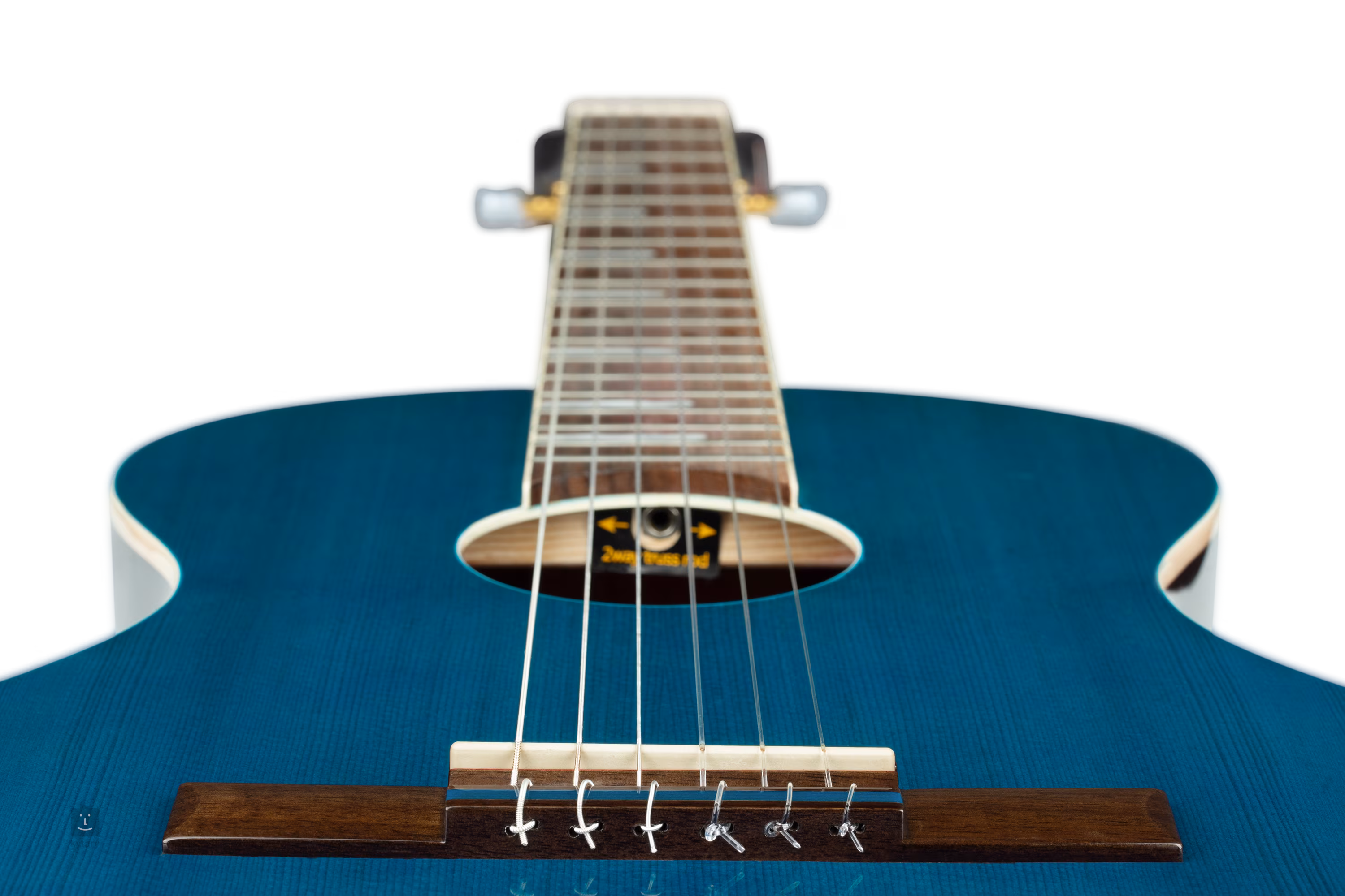 Die Saiten werden in offenen Stimmmechaniken mit Goldlackierung und einem Nussbaum-Griffbrett über einem Nullbund aus Kunststoff gehalten. Das stilvolle Design wird durch die farbige Lackierung des Resonanzbodens, die Einfassung des Korpus und des Griffbretts aus Elfenbeinimitat, die Perlmutt-Positionsmarkierungen auf dem Griffbrett und das Logo auf der Kopfplatte des Instruments unterstrichen.