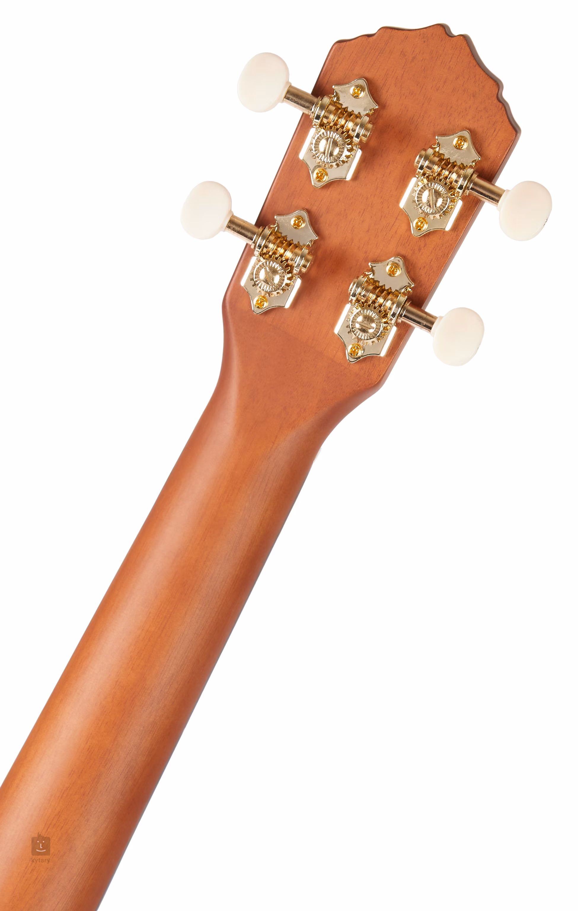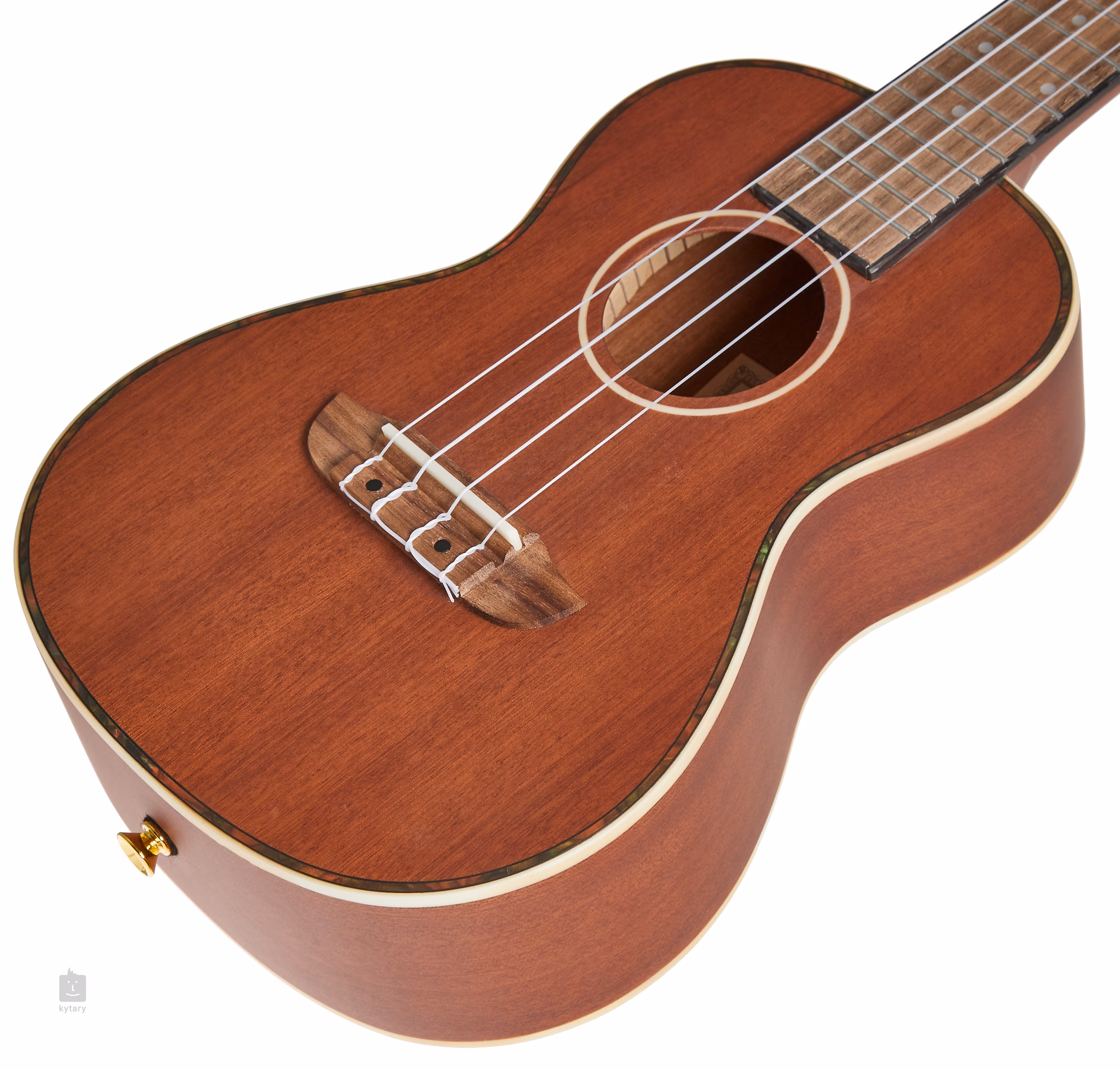 Der Korpus dieser Konzert-Ukulele ist aus massivem Mahagoni gefertigt und mit einer Mattlackierung versehen. An den Mahagoni-Hals schließt sich ein Walnuss-Griffbrett mit achtzehn Bünden an. Die Saiten sind in ein Walnuss-Griffbrett und offene goldene Stimmmechaniken mit weißen Wirbeln eingespannt. Traditionelle Elemente werden durch die helle ABS-Zierleiste und die Rosette repräsentiert.