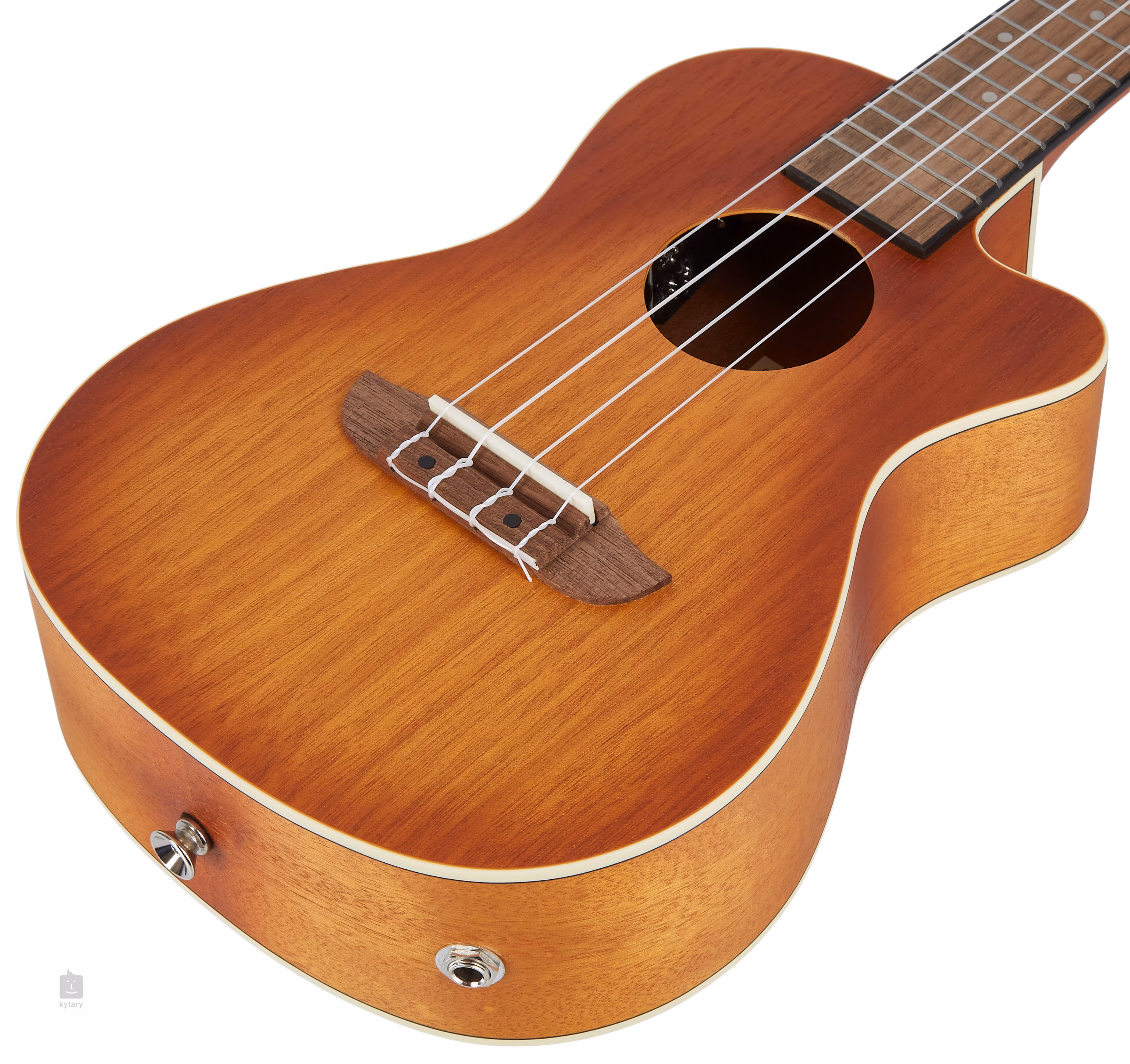 Die Vorderseite dieser Ukulele besteht aus Okoumé-Schichtholz, die Rückseite und die Zargen aus Sapele. Der Korpus ist mit einer Dawn-Sunburst-Lackierung und weißem ABS-Bordürenband versehen. Auf den Mahagonihals ist ein Griffbrett aus Walnussholz geklebt, das mit achtzehn Bünden und weißen Positionspunkten versehen ist. Die Saiten werden in einem Walnuss-Griffbrett und geschlossenen Stimmmechaniken des Gitarrentyps (Die-Cast) gehalten.