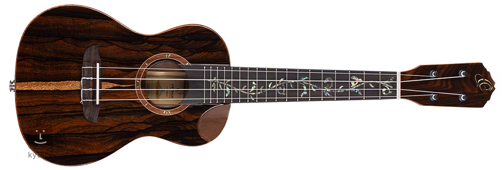 Die Ortega Elite Series präsentiert Ukulelen mit halbmassiver Konstruktion aus ausgewählten exotischen Hölzern. Bei der Konzert-Ukulele RUET-ZC handelt es sich um eine massive Decke aus exotischem Ziricote, ergänzt durch einen Boden und Zargen aus laminiertem Ziricote. Die markante Maserung des Holzes wird durch einen glänzenden Lack unterstrichen. Der Mahagonihals ist mit einem Walnussgriffbrett versehen, das mit einem dekorativen „Tree of Life”-Inlay aus Perlmuttimitat verziert ist. Für die Beschallung des Instruments sorgt ein MagusFly-Vorverstärker mit Bedienelementen in der Schallöffnung und Stromversorgung über einen wiederaufladbaren Akku. Die Saiten sind in Graph Tech Ratio-Stimmmechaniken mit schwarzen Wirbeln und einem Griffbrett aus Walnussholz befestigt. Die schöne Verarbeitung wird durch den stilvollen unteren Ausschnitt des Korpus, die Einfassung des Korpus aus Mahagoni und Ahorn, die mit Perlmutt-/Abalone-Imitat eingelegte Mahagoni-Rosette und das dekorative Firmenlogo auf dem Kopf unterstrichen. Die Ukulele wird in einer gepolsterten Tasche (Gig Bag) geliefert.