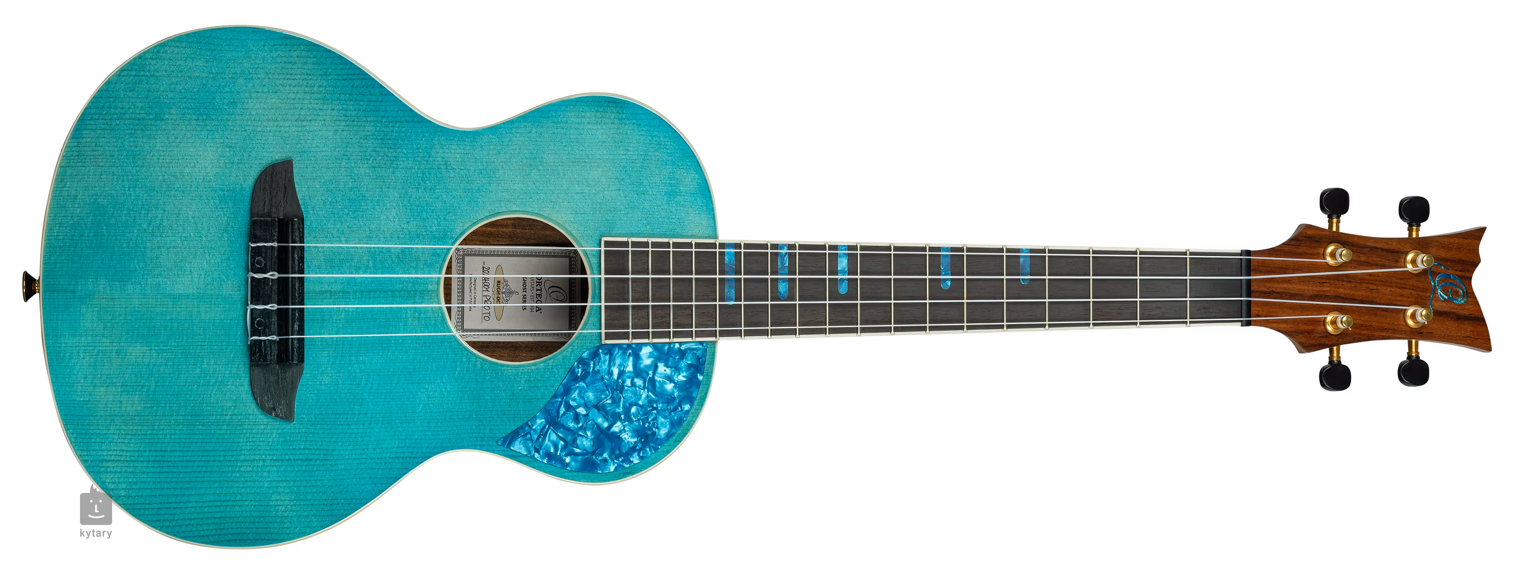 Die Ortega RUGH-OCT ist eine akustische Tenor-Ukulele aus der Ghost-Serie. Die Vorderseite des Instruments ist aus massiver Fichte gefertigt, die durch eine optisch spektakuläre Palisanderauflage auf Boden und Zargen ergänzt wird. Das Palisanderholz wird durch eine glänzende Lackierung akzentuiert, während die Decke mit einem Gloss Ocean-Finish und einem beeindruckenden "Blue Pearl"-Pickguard verziert ist.