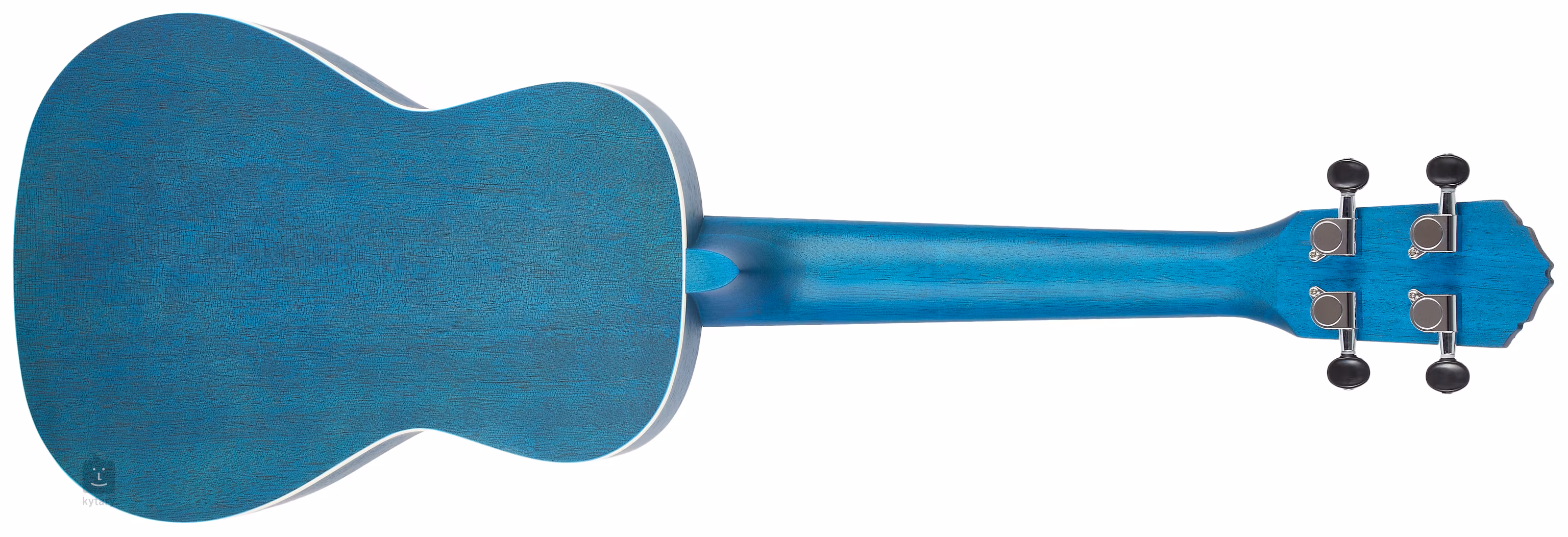 Die Vorderseite dieser Ukulele ist aus Okoumé, der Boden und die Zargen sind aus Sapeli gefertigt. Der Korpus ist mit einer ozeanblauen Lackierung und einer weißen ABS-Umrandung verziert. Auf den Mahagonihals ist ein Griffbrett aus Walnussholz geklebt, das mit achtzehn Bünden und weißen Positionspunkten versehen ist. Die Saiten sind in einem Griffbrett aus Walnussholz und geschlossenen Stimmmechaniken vom Typ Gitarre (Die-Cast) montiert.