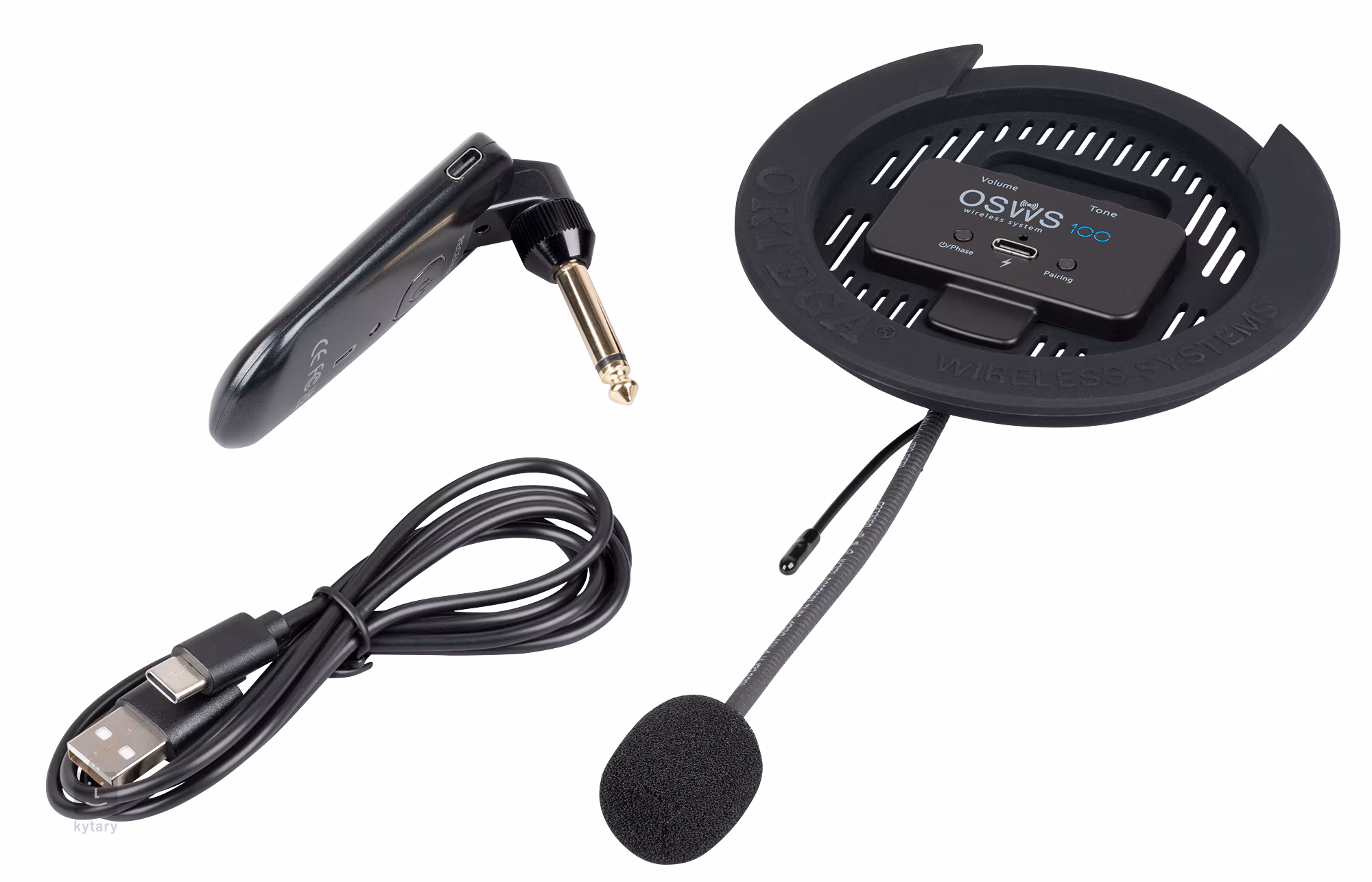 Der Tonabnehmer arbeitet mit kabelloser Audioübertragung und bietet so Bewegungsfreiheit und großartigen Klang ohne unnötige Kabel. Es verfügt über ein verstellbares Schwanenhalsmikrofon und einen wiederaufladbaren Akku mit USB-Ladestation (4 Stunden Ladezeit - 8 Stunden Spielzeit). Das System arbeitet im UHF-Band (4 Kanäle) und hat eine Reichweite von bis zu 30 Metern in einem offenen Bereich. Im Lieferumfang enthalten sind ein Tonabnehmer für die Soundbox, ein kabelloser Empfänger mit 6,3-mm-Klinkenanschluss und ein USB-C-Akkukabel.