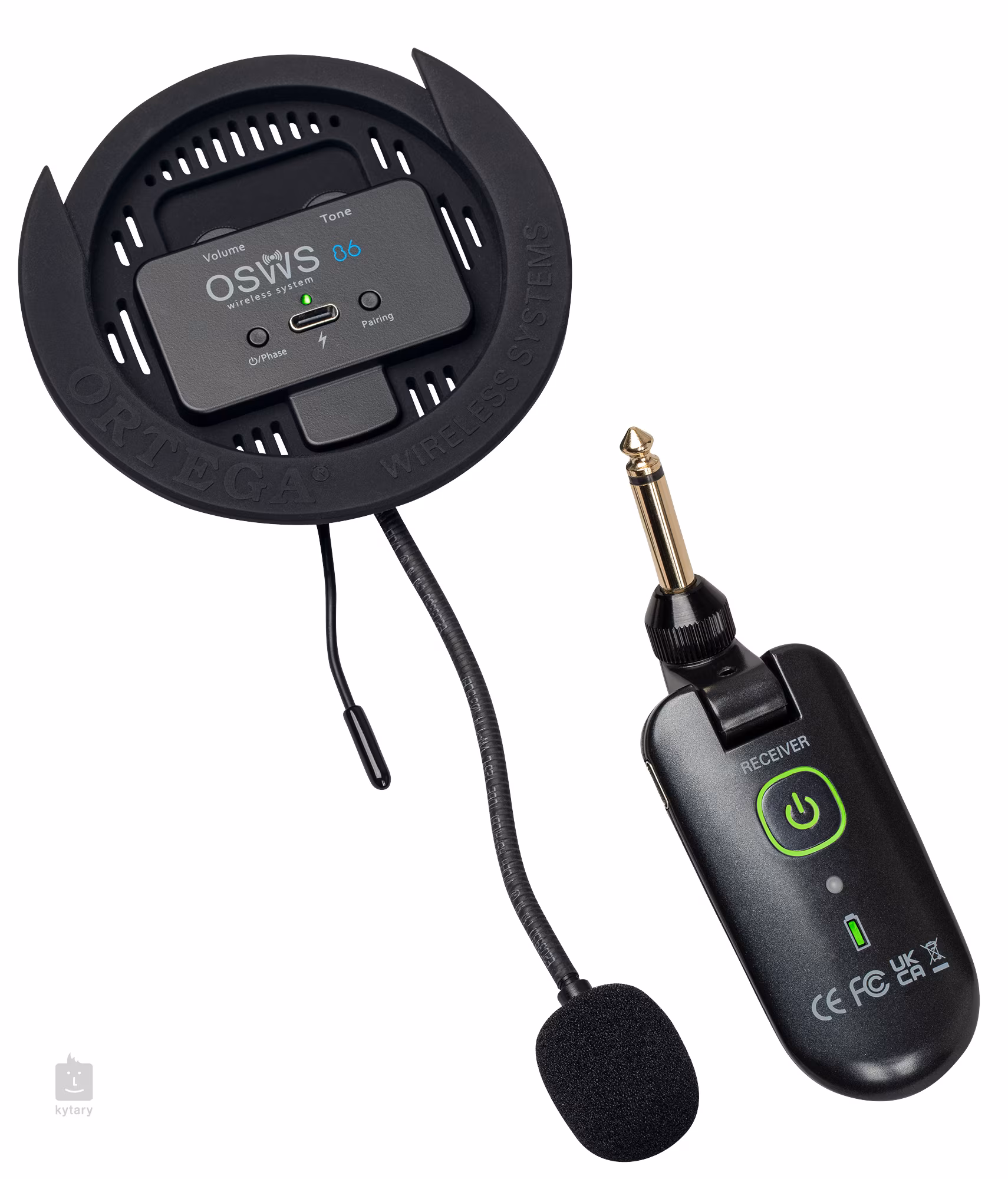 Der Tonabnehmer arbeitet mit kabelloser Audioübertragung und bietet so Bewegungsfreiheit und großartigen Klang ohne unnötige Kabel. Es verfügt über ein verstellbares Schwanenhalsmikrofon und einen wiederaufladbaren Akku mit USB-Ladestation (4 Stunden Ladezeit - 8 Stunden Spielzeit). Das System arbeitet im UHF-Band (4 Kanäle) und hat eine Reichweite von bis zu 30 Metern in einem offenen Bereich. Im Lieferumfang enthalten sind ein Tonabnehmer für die Soundbox, ein kabelloser Empfänger mit 6,3-mm-Klinkenanschluss und ein USB-C-Akkukabel.