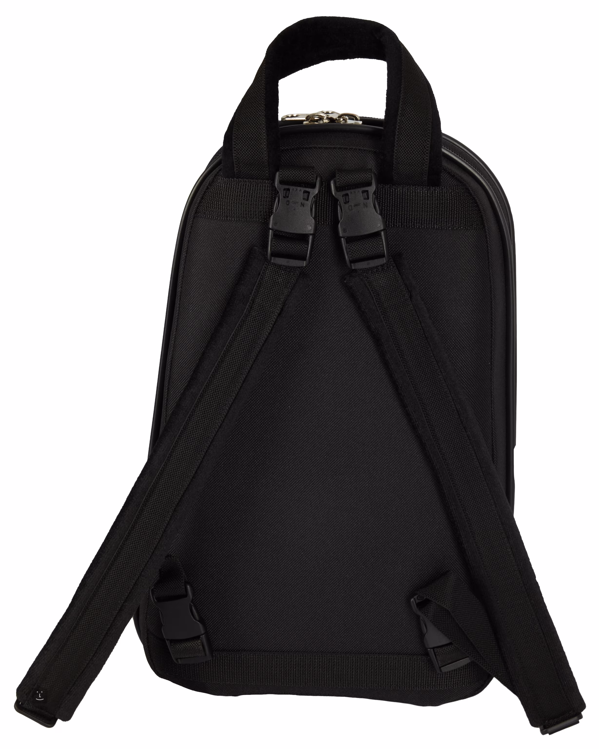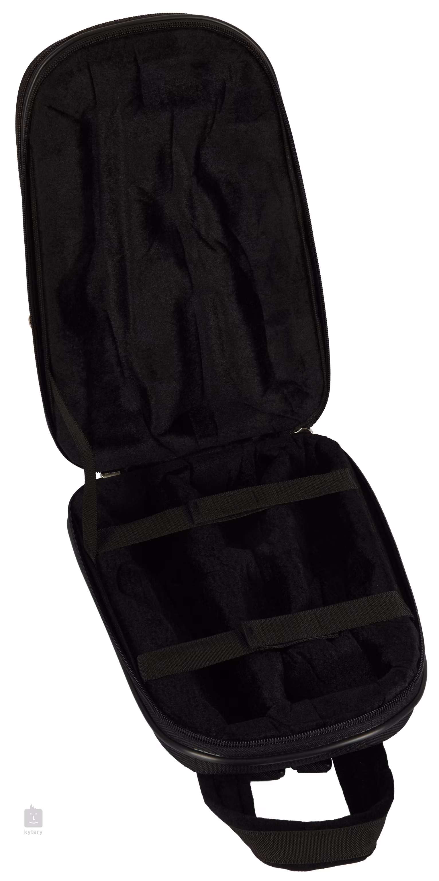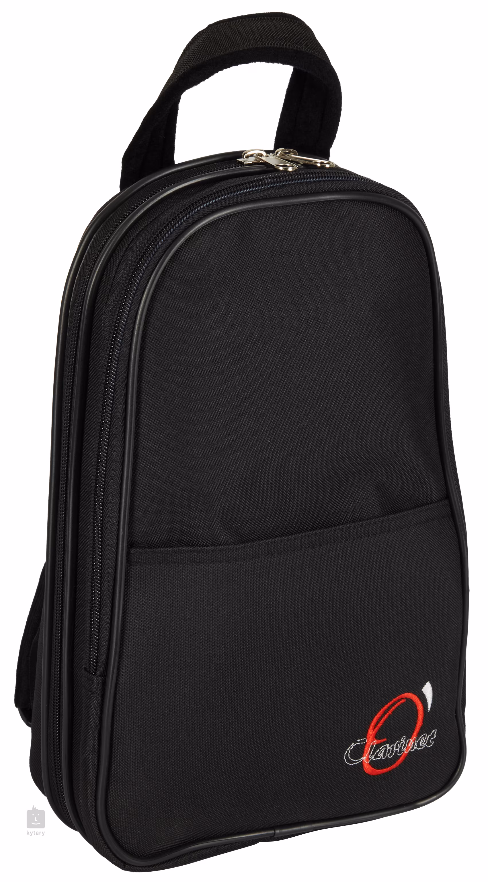 Klarinettenetui aus plastifiziertem Polyester. Sie verfügt über eine Außentasche für kleine Accessoires, Veloursfutter, Polyurethanschaum-Polsterung, Tragegriff, Schulterriemen und Reißverschluss.