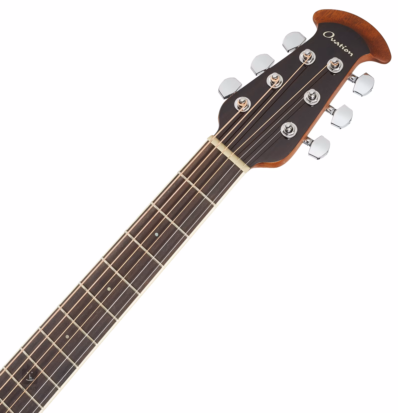 Akustikgitarren von Ovation erkennen Sie immer auf den ersten Blick. Sie haben einen typisch gewölbten Korpus aus einem speziellen Lyrachord-Material, das sehr haltbar ist und der Gitarre ausreichend Volumen verleiht. Dank des ergonomischen Korpus liegt die Gitarre auch gut in der Hand.