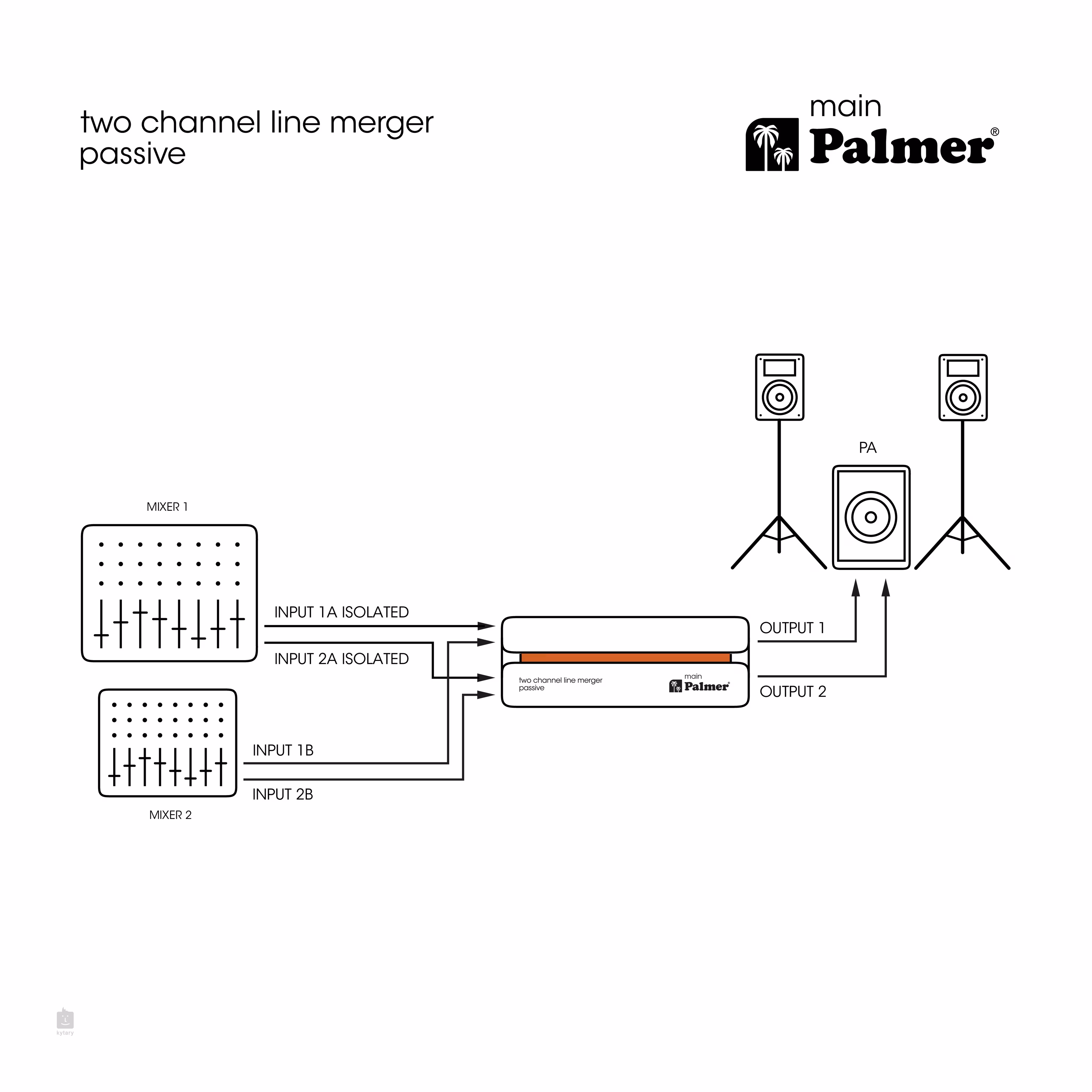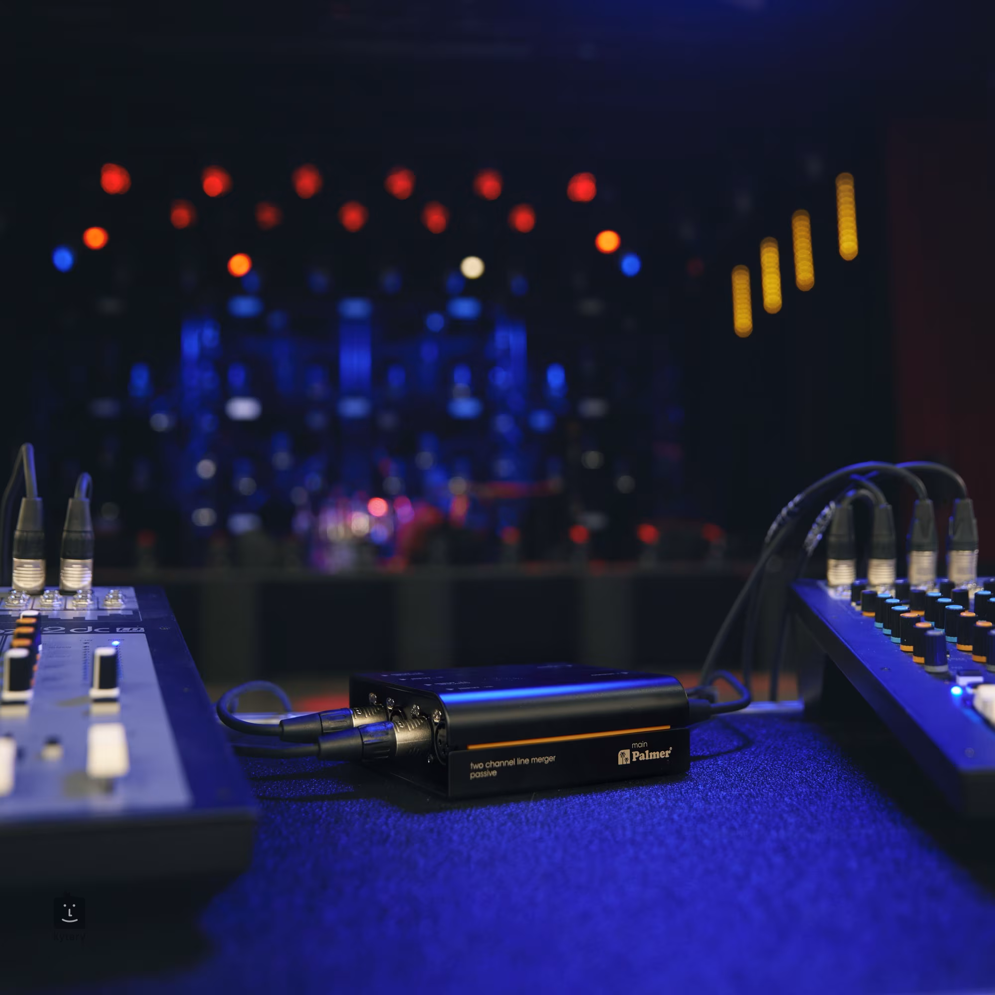Der Palmer RIVER main ist eine spezielle zweikanalige Merge-Box, die für die Verarbeitung und Verteilung von zwei verschiedenen Stereosignalen geeignet ist.