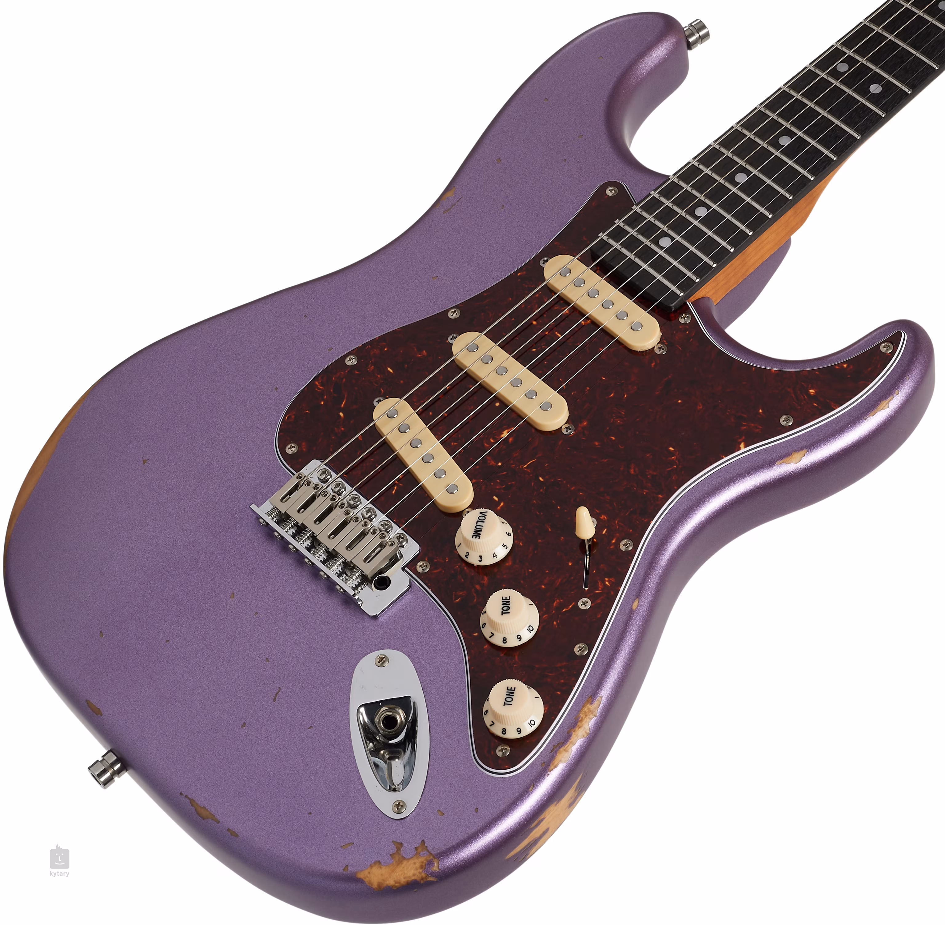 Drei handgewickelte Single-Coil-Tonabnehmer mit Alnico-V-Magneten verleihen der Gitarre einen klaren, dynamischen Klang. Seine Konturen können Sie mit den Standardreglern einstellen. Die Saiten sind über den Nulldel-Steg aus Knochen in verschließbaren Stimmmechaniken mit einer Übersetzung von 1:19 und einem Tremolo befestigt. Die stilvolle Verarbeitung wird durch ein Pickguard aus Imitationsschildpatt unterstrichen.