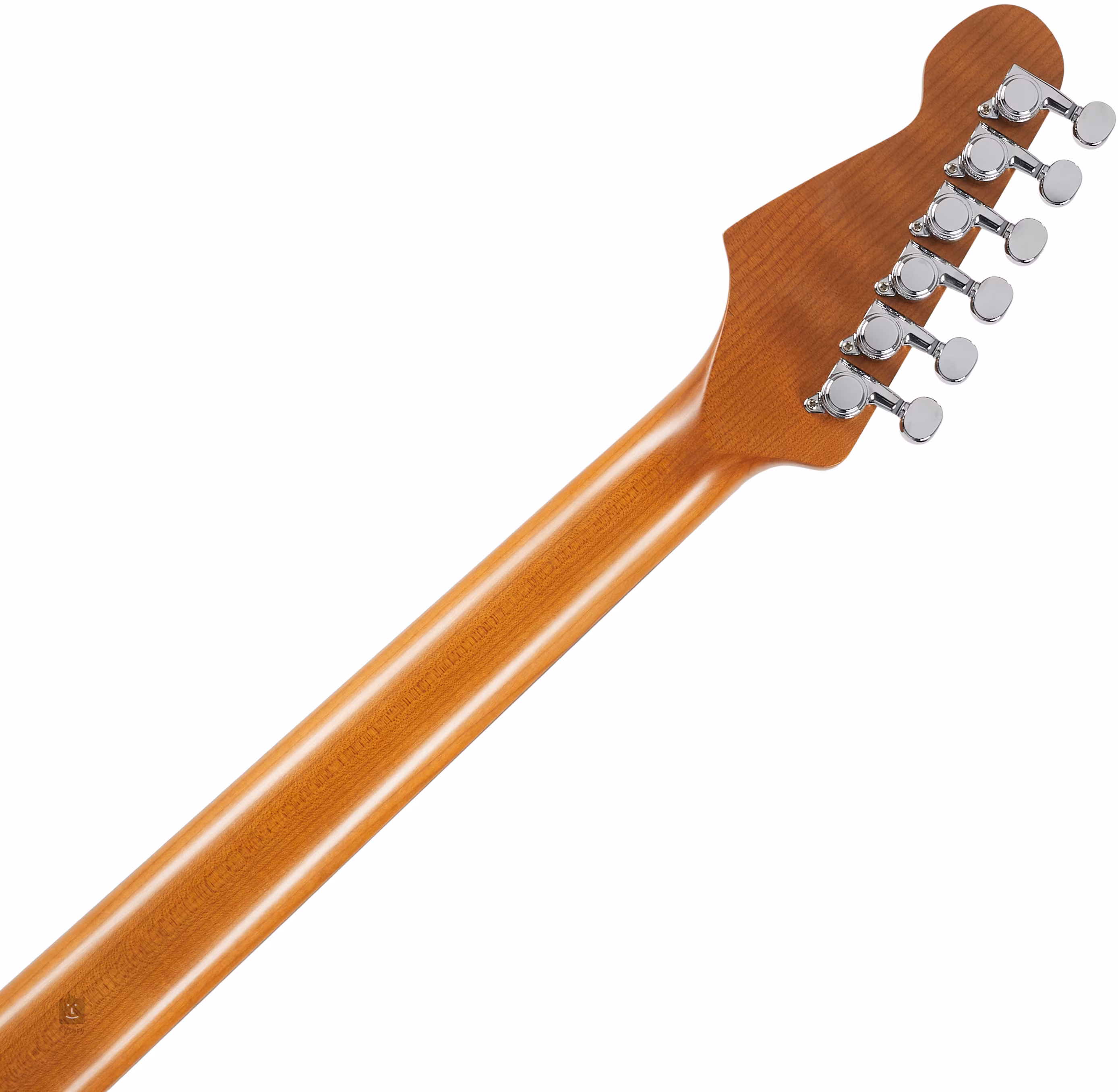 Der Korpus der E-Gitarre PT-3 SGR ist aus Paulownia-Holz gefertigt. Der von Hand aufgetragene Nitrocellulose-Lack lässt das Holz atmen. Auf den Ahornhals ist ein Palisandergriffbrett mit 22 Jumbo-Bünden aus Edelstahl aufgeklebt. Durch die Wärmebehandlung ist der Hals stabiler und erhält gleichzeitig ein angenehm goldenes Vintage-Aussehen. Der flachere Radius des Griffbretts (13,75 Zoll) entspricht zwar nicht ganz dem Vintage-Katalog, aber dadurch kann die Gitarre auch modernere Spieler ansprechen. Die Orientierung auf dem Griffbrett wird auch bei Dunkelheit durch lumineszierende Punkte an der Seite erleichtert.