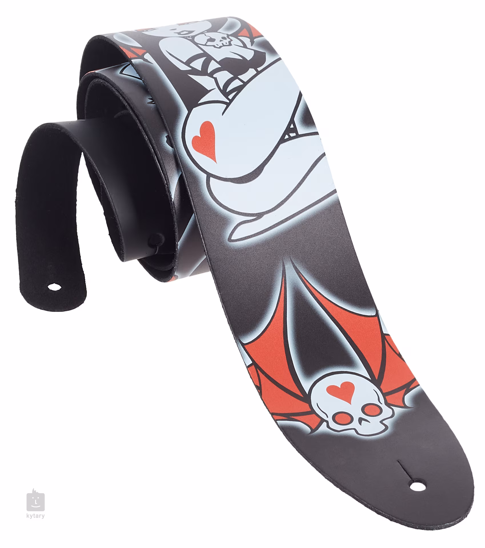 Diese Riemenserie ist mit Grafiken des bekannten Künstlers David Bollt verziert, dessen einzigartig gestaltete Werke heute überall auf der Welt zu finden sind - ob in Galerien, auf Platten berühmter Rockbands, Zeitschriftencovern, E-Gitarren, Kleidung oder Autos. Die Gurte selbst sind aus hochwertigem Leder gefertigt, das dank seiner Überbreite auch beim Spielen mit sehr schweren Instrumenten maximalen Komfort bietet. Die Grafiken werden dann in einem speziellen Direktdruckverfahren auf den Gurt gedruckt, das einen hohen Kontrast und eine lange Lebensdauer garantiert.