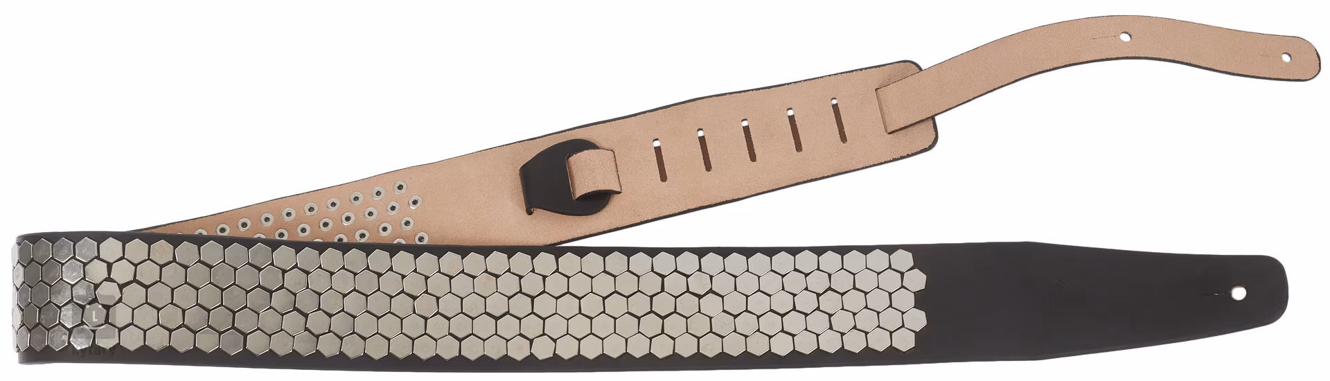Die Marke Perri's Leathers bietet Gurtbänder aus hochwertigen und dennoch leichten Materialien, die einen bequemen Sitz und eine lange Lebensdauer gewährleisten. Dieser unübersehbare Gurt wird nicht nur Gitarristen der harten und schweren Genres gefallen. Er ist mit sechseckigen Metallfedern überzogen und passt somit perfekt zum Outfit eines jeden Rockers oder Metalheads. Er ist aus hochwertigem, komfortablem Leder gefertigt. Natürlich ist er auch in der Länge verstellbar.