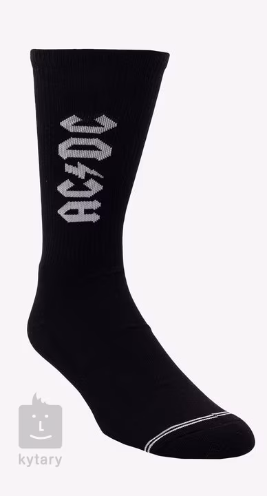 Ein Paar schwarze AC/DC LIGHTNING STRIKES CREW Socken in Größe L (Large, Männer 9-12, Frauen 11-14). 51% recyceltes Polyester, 36% Baumwolle, 11% Nylon, 2% Elasthan.