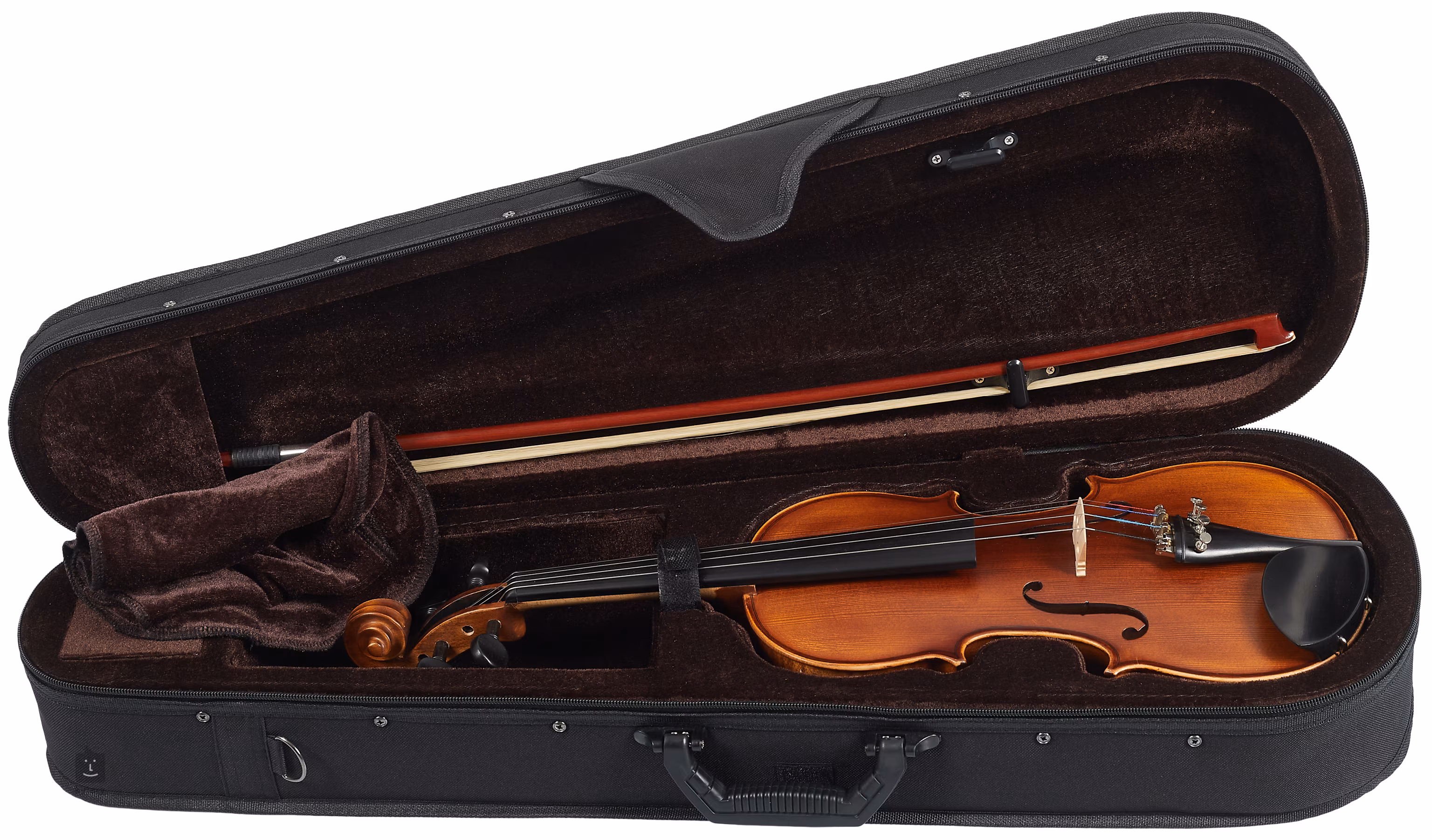 Der Resonanzboden besteht aus hochwertiger ostsibirischer Fichte, während der Rest des Korpus aus Ahornholz gefertigt ist. Das Griffbrett und der Resonanzboden sind aus Ebenholz, und die Oberfläche der Geige hat eine matte Lackierung in einem schönen "antiken" Finish.