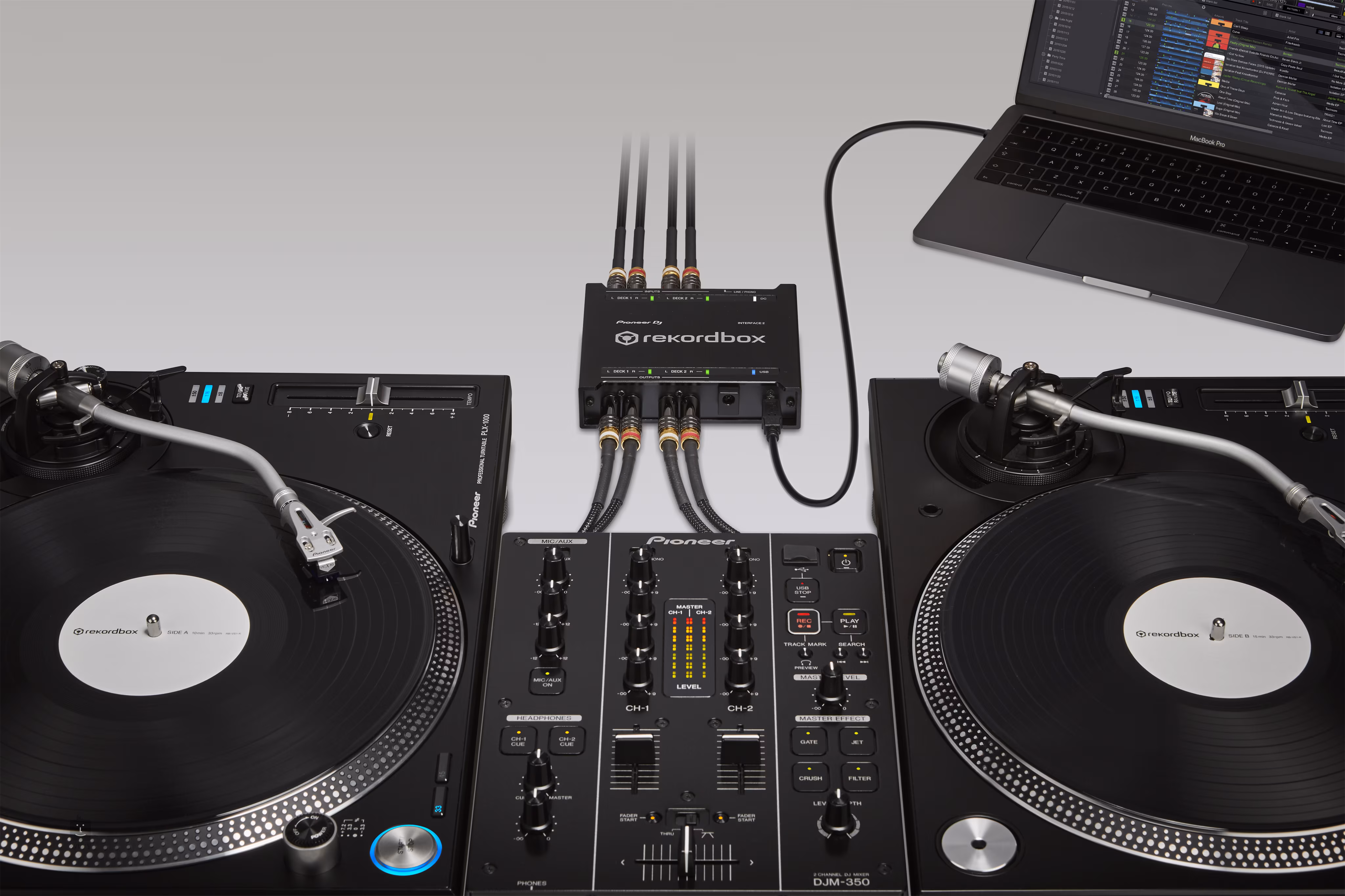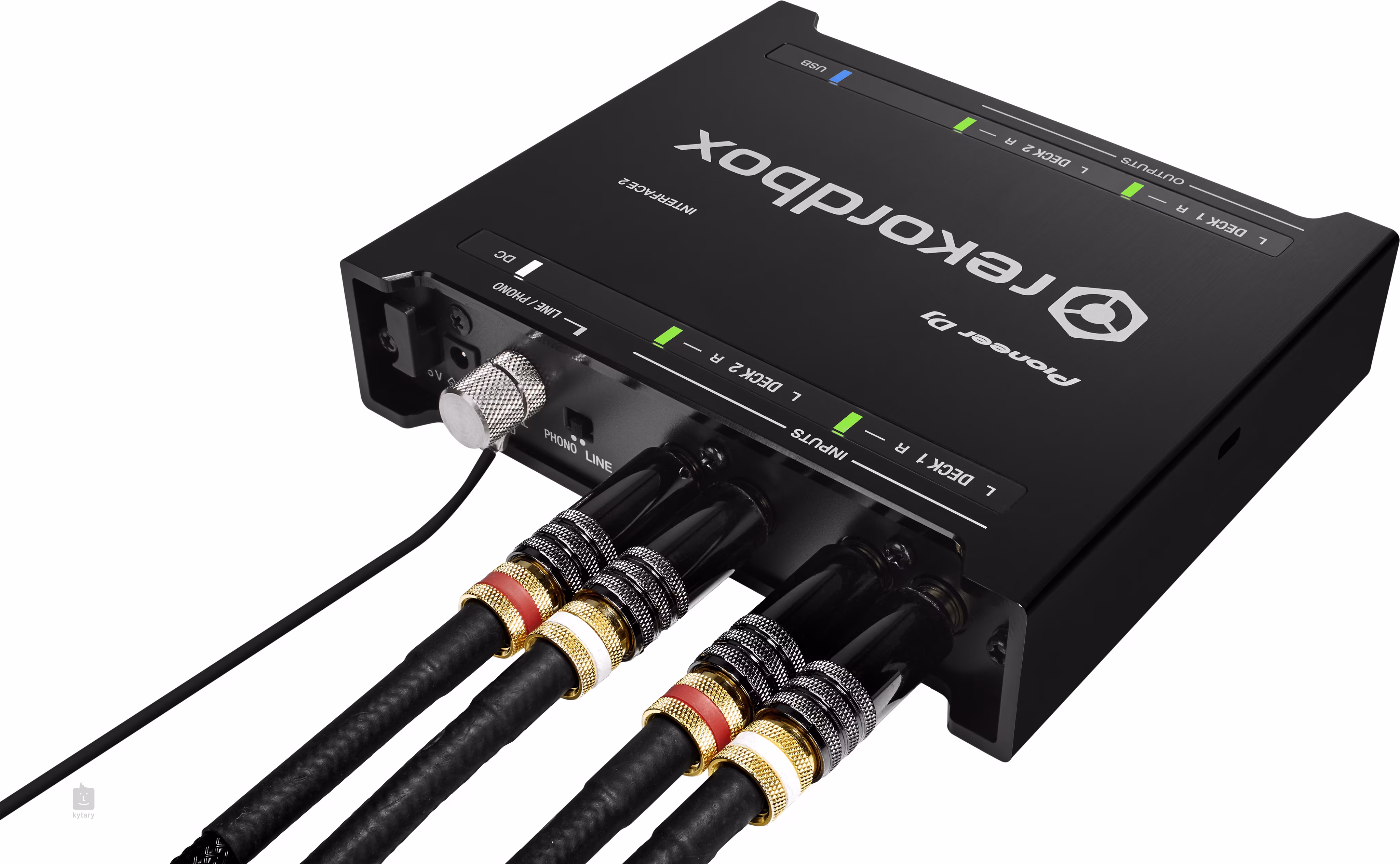 Interface 2 ist eine Kombination aus Audio-Interface und Software, mit der Sie die Rekordbox-Software über Ihren analogen Plattenspieler nutzen können. Alles, was Sie zum Anschließen benötigen, ist im Paket enthalten, und Sie können sofort einen exzellenten Sound mit einer Auflösung von bis zu 96 kHz, die Freiheit des digitalen Mischens und analoge Audioaufnahmen genießen. Natürlich gibt es ein robustes Gehäuse, die Möglichkeit der Stromversorgung über USB oder einen Adapter und einen Erdungsstift.