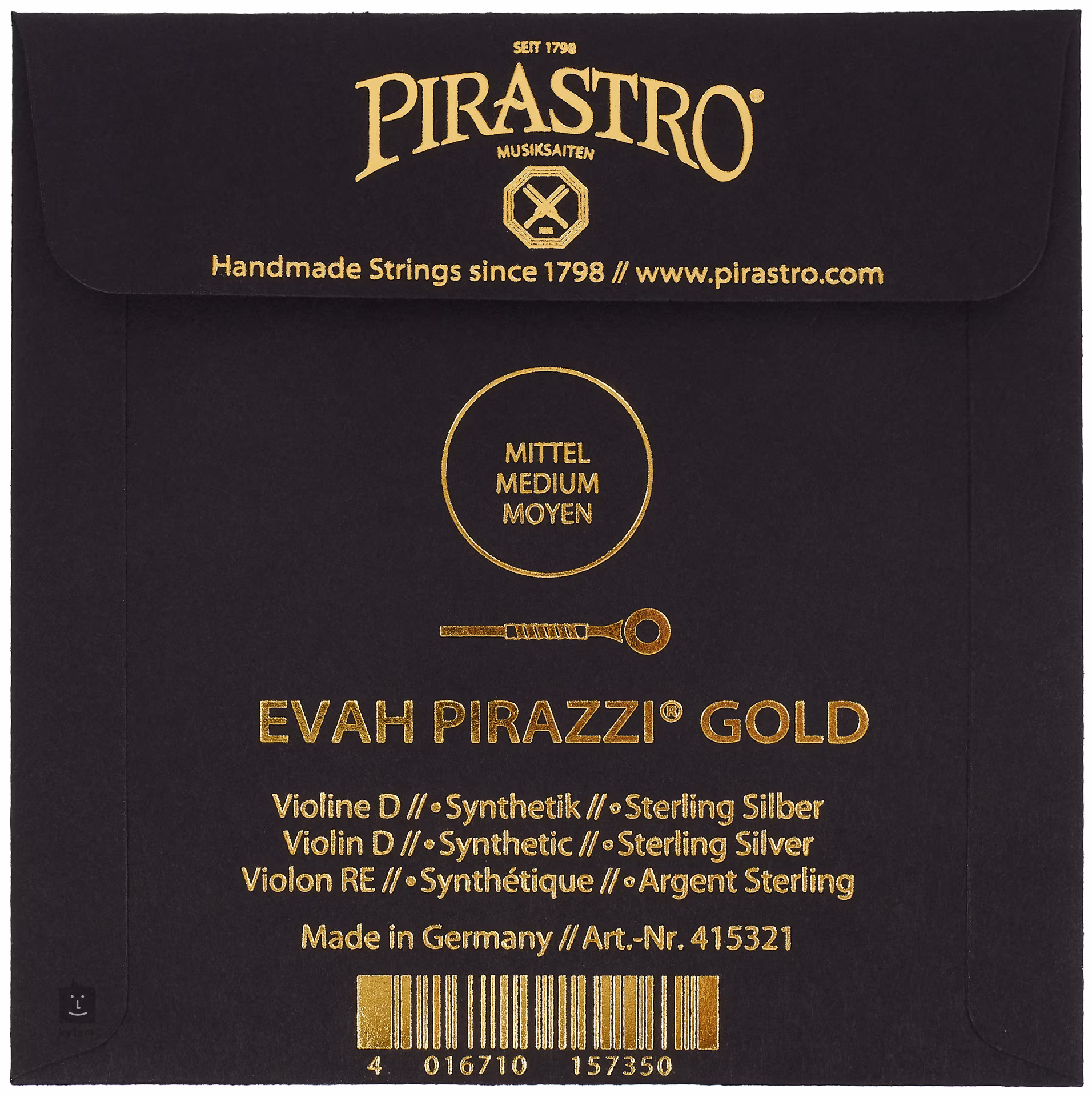 Die Pirastro Evah Pirazzi Gold Saiten bestehen aus einem multifilen Synthetikkern mit Gold- und Silberumspinnung und bieten einen brillanten, vollen Klang mit einer großen Bandbreite an Klangfarben. Der Vorteil des synthetischen Kerns liegt in der absoluten Stabilität der Stimmung, die keinen Temperatur- und Feuchtigkeitsschwankungen unterliegt. Die Saiten müssen nicht lange gespielt werden und behalten ihren Klang auch danach noch lange bei.