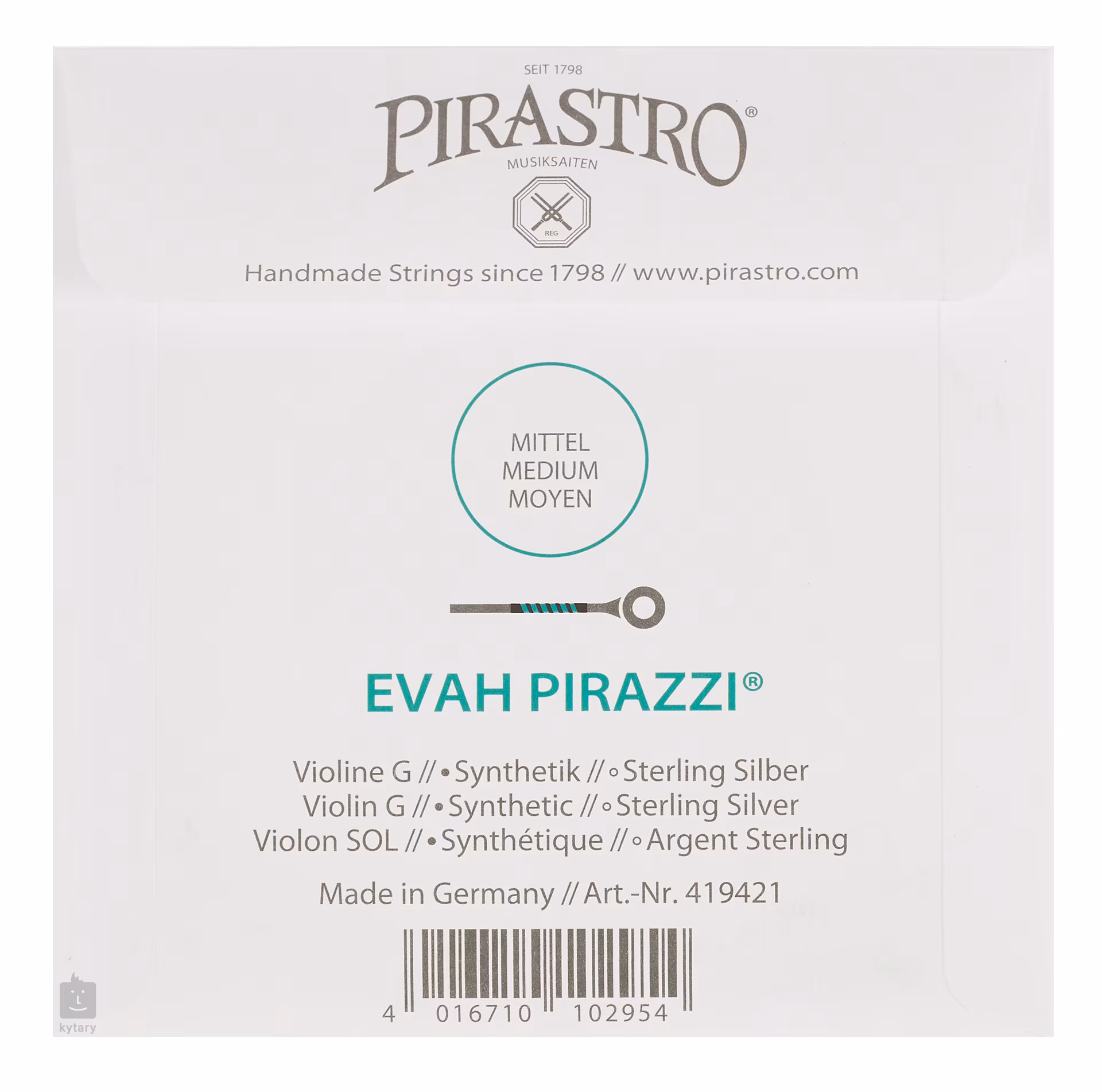 Die Pirastro Evah Pirazzi Saiten bestehen aus einem multifilen synthetischen Kern mit Silberumspinnung, der einen brillanten, vollen Klang mit einem breiten Spektrum an Klangfarben bietet. Der Vorteil des synthetischen Kerns liegt in der absoluten Stabilität der Stimmung, die keinen Temperatur- und Feuchtigkeitsschwankungen unterworfen ist; außerdem müssen die Saiten nicht lange gespielt werden und behalten ihren Klang auch danach noch lange Zeit.