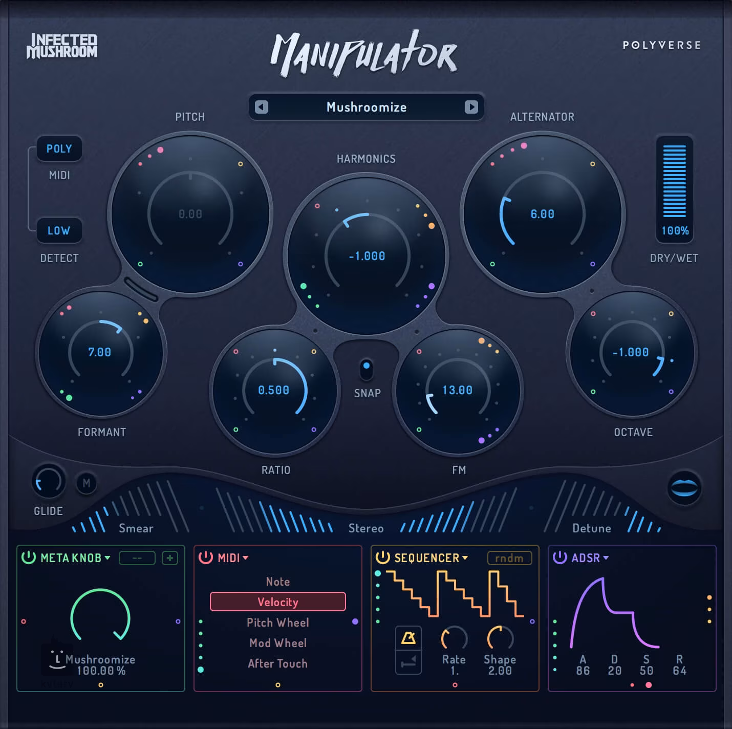 Der Manipulator von Polyverse ist ein leistungsfähiges Werkzeug zur Veränderung von Klangfarbe und Tonhöhe eines monophonen Klangs auf neue und bisher unerforschte Weise. Dank eines einzigartigen Algorithmus und zehn Effekten erhalten Sie eine unendliche Anzahl von Kombinationen, um einen strafferen Sound zu erzielen und die Gesangsstimme anzupassen. Außerdem können Sie bis zu vierstimmige Melodien erstellen. Sie erhalten ein übersichtliches Bedienfeld und Echtzeitanzeigen.