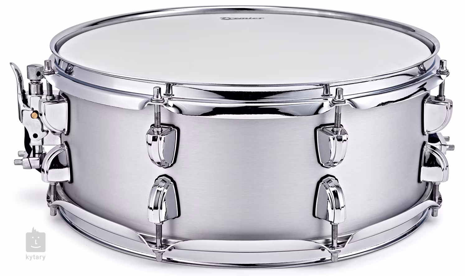 Das Design der Trommel basiert auf einer Kombination aus Klassik und moderner Ästhetik. Die Oberfläche in Brushed Aluminium sieht elegant und professionell aus, während die verchromte Hardware den Gesamteindruck von Qualität und Langlebigkeit ergänzt. Auf dem Korpus fehlt auch nicht das ikonische P-Badge von Premier, das das Erbe und die präzise Handwerkskunst dieser britischen Marke symbolisiert.