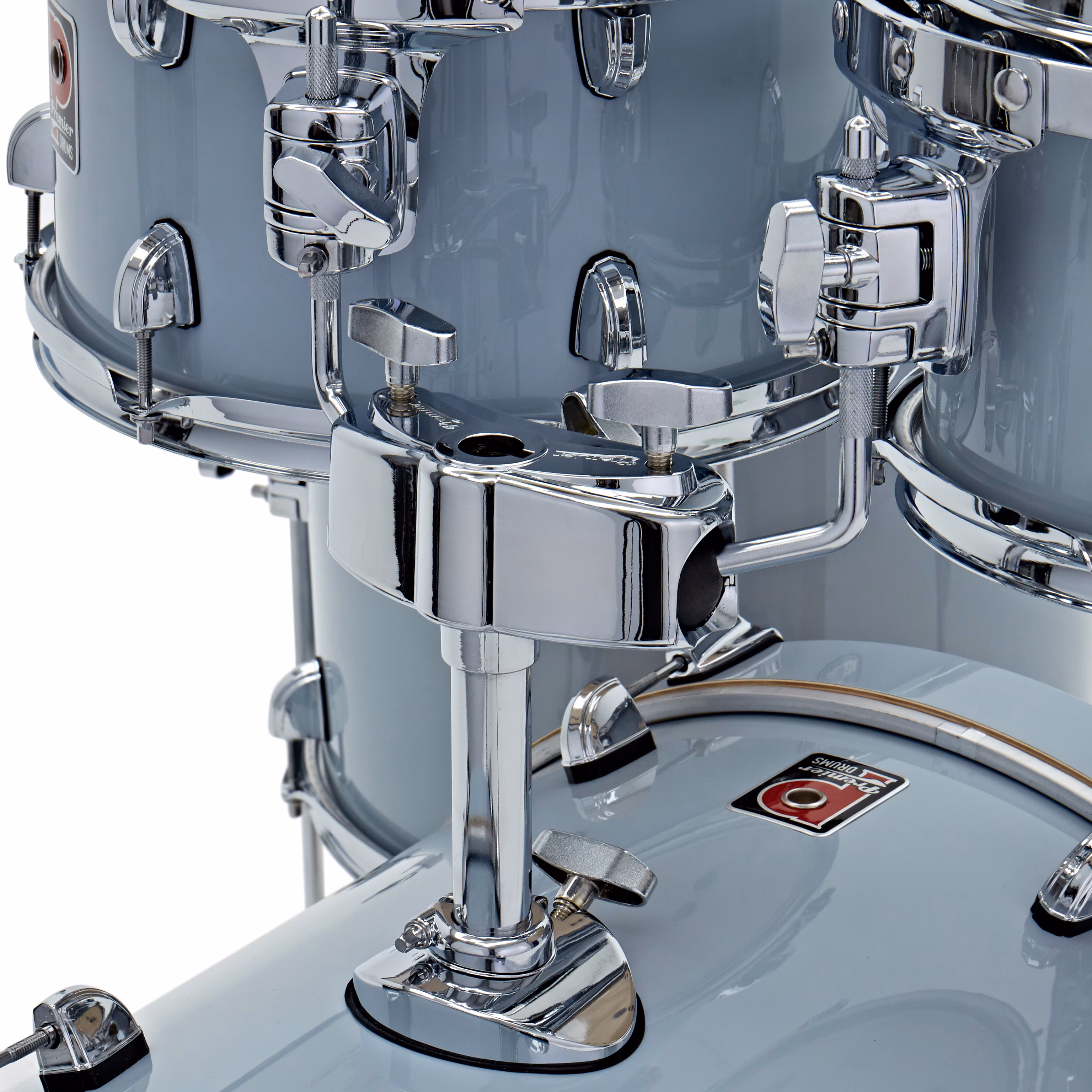 Teil der Konstruktion ist auch ein praktisches System von Memory-Locks an den Tom- und Floor-Tom-Halterungen, das eine schnelle und präzise Einstellung auch bei häufigem Auf- und Abbau des Sets gewährleistet. Die direkt an der Bassdrum befestigten Toms sorgen zusätzlich für Stabilität beim dynamischen Spiel.