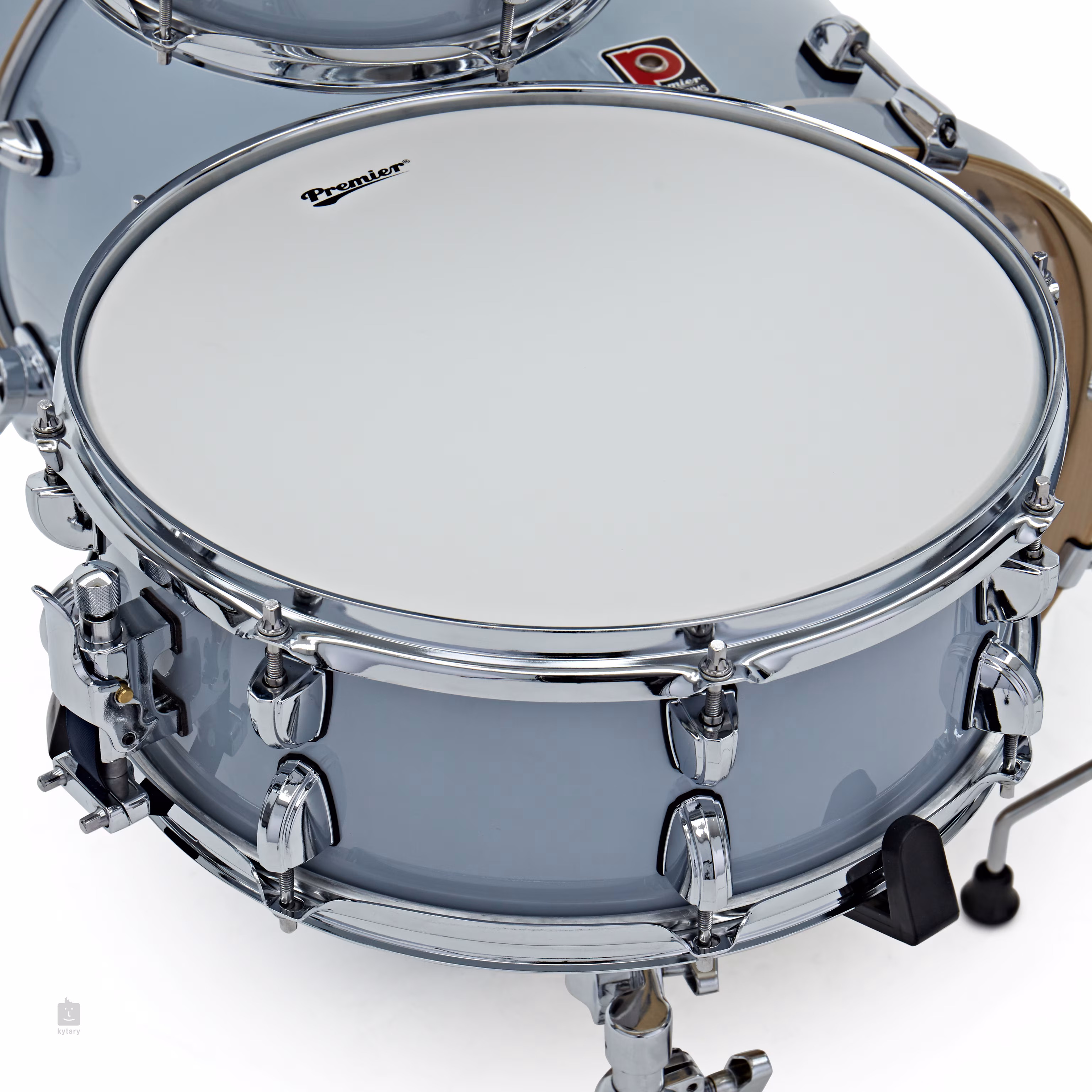 Die Ästhetik des gesamten Sets wird durch auffällige Hardware unterstrichen, die von historischen Premier-Modellen inspiriert ist, sowie durch dreifache Stahlfelgen, die einen vollen Klang bei der Cross-Stick-Technik bieten. Im Lieferumfang ist auch eine 14" x 5,5" Snare Drum enthalten, die den universellen Charakter des gesamten Sets ergänzt.